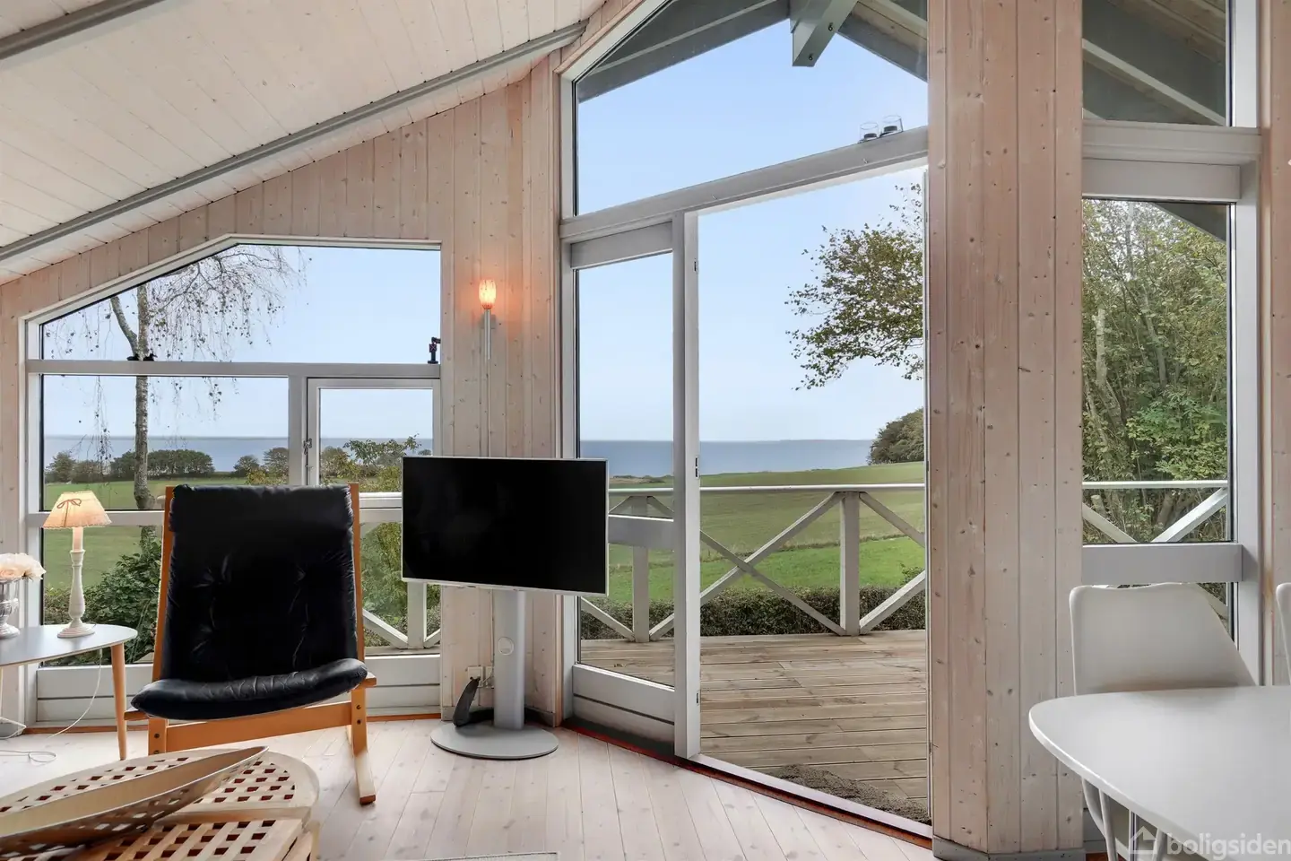 Dette sommerhus fra 2001 er et sandt fristed – en oase i ordets bedste forstand.Huset er opført af den nuværende ejer, har aldrig været udlejet og har altid stået opvarmet – noget, der tydeligt mærkes i både stand og atmosfære. Beliggenheden er intet mindre end enestående: midt i åbne vidder med frit udsyn til Lillebælt og de sydfynske øer, mens Blommeskobbel Skov danner en smuk, grøn kulisse bag huset. Tilkørslen sker ad idylliske Skovkobbel – en lille, blind vej med kun to adresser. Her mærker