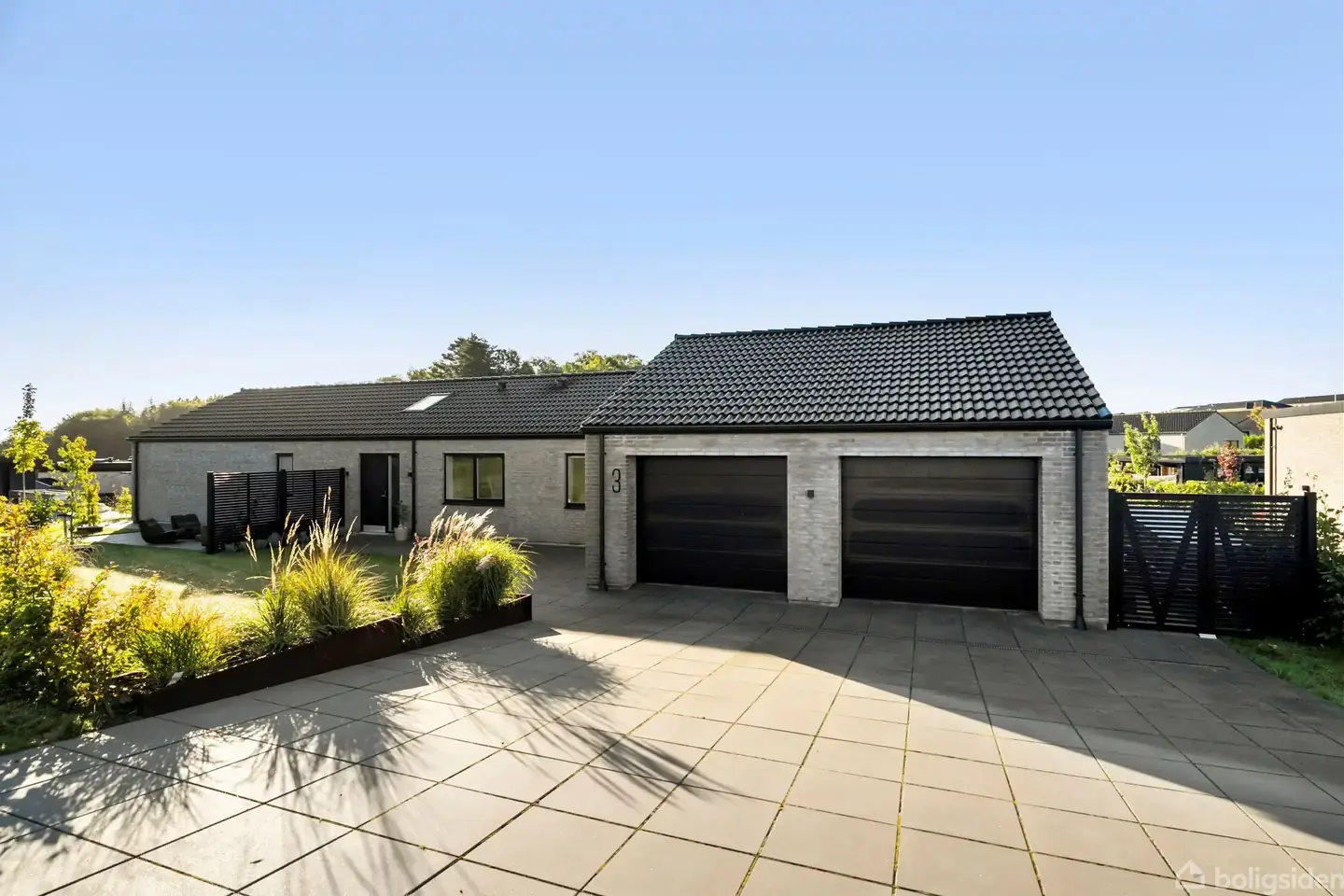 Åbent hus med tilmeldingskrav 26/2 - klik på billede - Velkommen til denne smukke og moderne villa i det attraktive nybyggerkvarter Provstlund i Lund. Her får du det bedste fra to verdener – et roligt, naturskønt nærmiljø og kort afstand til byens puls. Kun 10 minutters kørsel bringer dig til Horsens centrum, og på få minutter er du på motorvej E45. Lund har i de seneste år udviklet sig til en yderst populær by med et stærkt lokalsamfund. Her finder du både skole til 9. klasse, flere gode daginstitutioner, sportshal, multihal, legepladser og grønne oaser – alt sammen inden for kort afstand. Dagligdagen glider let med både REMA 1000, Brugsen, bager, frisør, pizzeria og idrætsfaciliteter lige om hjørnet. Provstlund er særligt eftertragtet for sin naturskønne beliggenhed med både sø, fredskov og et netværk af stier, der indbyder til løbe- og gåture i det fri. Villaen, opført af kvalitetsbevidste Hybel Huse, byder på hele 186 m² gennemført bolig og en rummelig dobbeltgarage på 70 m² med god plads til både hobby og opbevaring. Ovenpå finder du et praktisk loftrum med fritrumsspær og masser af anvendelsesmuligheder. Indenfor mødes du af en indbydende entré og et funktionelt bryggers. Børneafdelingen rummer to skønne værelser, et kontor samt et stilfuldt gæstebadeværelse. Forældreafdelingen er indrettet som en privat oase med eget badeværelse og walk-in-closet. Husets hjerte er det store, lyse køkken-alrum, der elegant binder hjemmet sammen. Her er plads til både familie og gæster – med hyggelig alkove, sansevindue, kaffe- og vin-niche samt et praktisk, “skjult” viktualierum. Den nedsænkede stue skaber en intim atmosfære og bliver hurtigt familiens naturlige samlingspunkt. Fra køkkenet er der udgang til en sydvestvendt, overdækket terrasse, perfekt til sommeraftener og hyggelige stunder. Haven er nem at holde og byder på en stor, flot træterrasse i flere niveauer – ideel til grill, gæster og afslapning i det fri. Udover dette, så er der flere hyggelige spots omkring huset. Beliggenheden er særligt skøn med udsigt til skoven og masser af privatliv. Et hjem med plads, komfort og atmosfære – perfekt til den moderne, pladskrævende familie, der ønsker både nærhed til natur og by.