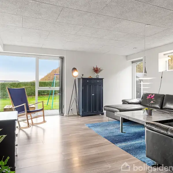På Skovlunden 64 i Løgstrup finder I denne smukke og gedigne kvalitetsvilla fra Gamborg, som nu kan blive jeres. Huset er opført i 2019, men opfylder normen for energimærkningen A2020, og byder på 152 m2 i ét plan med gulvvarme i alle rum, lækre Troldtekt lofter samt alt interiør fra HTH for at skabe en rød tråd i indretningen. Ejendommen er fuldmuret og kan desuden også bryste sig af at have jordvarme samt en lækker dobbelt garage med elektriske porte. Her parkeres bilerne, hvorefter der er d