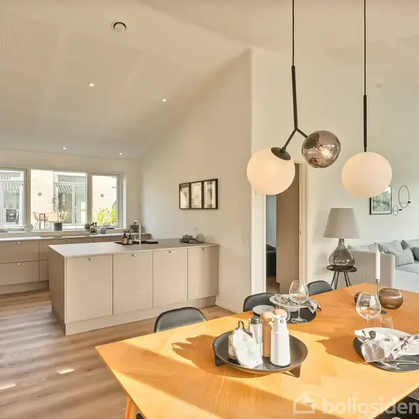 Familieliv i fokus – nybygget hjem med plads til hverdag og hygge Med en beliggenhed i Dronningborg i et hyggeligt nybyggerkvarter, er der ikke langt til hverken skole,indkøb eller idrætsfaciliteter. Herfra har du under 6 km. til Randers Centrum, hvor du finder et udvalg afspændende butikker, caféer og aktiviteter. Er du til det aktive liv, så kan du tage en kajaktur på Gudenåeneller køre en tur på mountainbiken på de mange stier i området. Husets 130 m2 er veludnyttet og ideelt til den lille fa