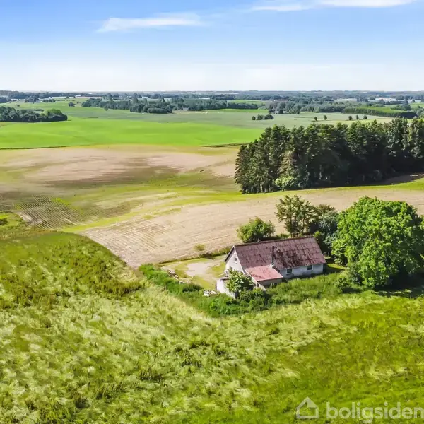 Bo omgivet af åbne marker mellem Ans og Kjellerup