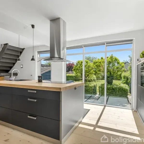 Godt beliggende og spændende indrettet murermester villa, beliggende i roligt og attraktivt villakvarter.Ejendommen opvarmes med fjernvarme kombineret med brændeovn.Indrettet med åben entre med direkte adgang til stor lyst opholdsstue med trægulve og glatte gips lofter. - i kombination med opholdsstuen er der stort åbent køkken med pænt inventar og alt i hårde hvidevarer - fra køkkenet er der direkte udgang til sydvendt terrasse og have.1. sal er indrettet med 3 gode værelser samt toilet med hån