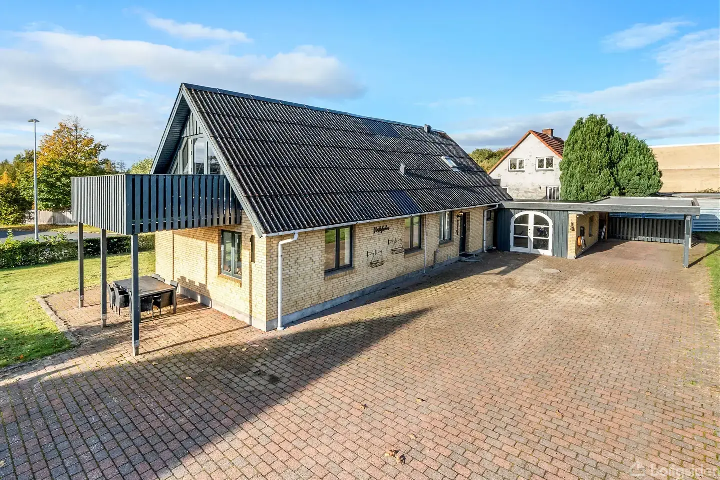 Åbent hus med tilmeldingskrav 1/2 - klik på billede - Velbeliggende 2-plans villa med stort værksted – centralt i Ejstrupholm Velkommen til Skovvænget 1 – en hyggelig og velholdt villa med mange gode kvadratmeter både ude og inde. Her får du hele 144 kvm bolig fordelt på to plan, samt et stort muret værksted/garage på 44 kvm med plads til både bil, hobby og opbevaring. Herudover forefindes ikke mindre end to fine carporte på hver 27 kvm. Velegnet til campingvogn, trailer m.m. Ejendommen ligger i et roligt kvarter i Ejstrupholm, med kort afstand til skole, SFO, børnehave, idrætshal, daginstitutioner og ikke mindst det skønne anlæg med offentlig legeplads og stier omkring og ned til den smukke Ejstrup Sø, som næsten ligger lige i "baghaven". Villaen er opført i 1941 og fremstår med en god planløsning, hvor stueplan rummer de vigtigste funktioner i hverdagen. Her finder du et praktisk og flot bryggers med klinkegulv, træloft og plads til både vaskemaskine og tørretumbler samt herudover godt med skabsplads. Et lækkert spisekøkken med mange skuffer – godt med opbevaringsplads – samme stil som fra bryggers, som giver et roligt helhedsindtryk. Videre adgang til spisestuen som er i åben forbindelse med opholdsstue – alt lyst og rart. I stueplan findes desuden, med adgang fra baggang, et soveværelse med skabsvæg og udgang til forhave - samt med et integreret walk inn closet med skabslåge påsat spejl. Herudover finder vi et pænt badeværelse med klinkegulv med varme, klinker på væggene og bruseniche. Fra opholdsstuen ledes man op på 1. sal som på nuværende tidspunkt er indrettet med en stor og rummelig stue med udgang til altan, et værelse med udgang til altan samt eget toiletrum. De to altaner giver et skønt udeliv med kig ud over kvarteret og haven. Udendørs kan du nyde de rolige omgivelser i den store have med overdækket terrasse og evt. indretning af den ene carport til et hyggeligt uderum. I hvert fald perfekte rammer til hyggelige stunder med familie og venner. Det store værksted/garage på 44 kvm. indeholder desuden et disponibelt rum – ideelt til hobby, opbevaring eller mindre håndværksprojekter. Alt i alt en velindrettet villa med sjæl og funktionalitet, hvor man får både plads, beliggenhed og gode udemiljøer i et skønt område med hurtig adgang til områdets skønne naturområder. Fakta: Sælger oplyser, at der er gulvvarme i hele stueplan pånær soveværelset. Der er gulvarme i garage/værksted og tilhørende rum til garagen er lydisoleret, samt opvarmet, dog ikke via gulvvarme. Der er opsat ny eltavle i garage og gulvet i garage/værksted er epoxy behandlet. Huset er skalmuret med en gul sten Ladeboks er installeret men medfølger ikke. Området: Ejstrupholm er en rigtig aktiv by med stærke fællesskaber omkring skole, hal og forskellige foreninger, herunder sport, kreativitet, sang og m.m.m. Byen ligger i god køreafstand til flere driftige omegnsbyer, blandt andet Brande, Ikast, Herning, Silkeborg og Billund, så der er gode muligheder for pendlere. Ejstrupholm er smukt beliggende i det midtjyske ved Ejstrup Sø med masser af mulighed for skønne natur gåture, men også nær både Nørlund og Gludsted Plantager. ” Anlægget ” ved Hallen med stor legeplads, boldplads, træningsfaciliteter og ikke mindst i umiddelbar tilknytning til byens stadions som ligger lige ned til Ejstrup Sø. I Ejstrupholm er der mulighed for dagligvareindkøb, og der er flere andre butikker og handlende i byen. Ejstrupholm Skole går op til 9. klasse og der er SFO mulighed. Derudover nyere børnehave med mulighed for vuggestuepladser. Så alt i alt, en by med infrastrukturen på plads, og en by som er tryg at bo i og vokse op i. Se nærmere her: