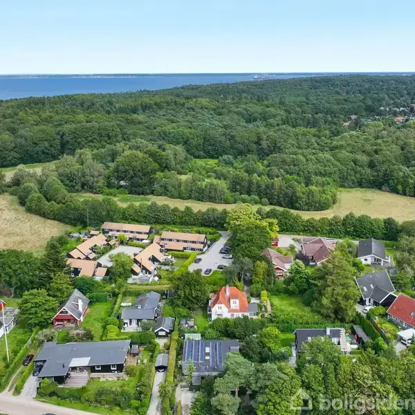 Helårshus. På en lun og hyggelig, privat skovvej med indkørsel gennem den smukke Hornbæk Plantage står et moderne hus med skov og strand som naboer. Ja, her er der fred ro, selv om vi kun er få minutter på cykel til indkøb, caféer og restauranter midt i Hornbæk. Lavenergihus Ejendommen er et arkitekttegnet cedertræshus fra 2014, bygget med sans for æstetik og bæredygtighed. Med jordvarme og solceller har huset en lys og rummelig planløsning med masser af plads til familieliv. Grusvejen med privat pullert til skoven lukker vejen, så ikke meget trafik her. Familiernes særlige fællesskab på vejen er noget helt for sig selv. Her kender og passer naboerne på hinanden. Arkitekttegnet have Grunden er på 827 m² og anlagt som Paradisets Have med masser af grønne opholderum som stor køkkenhave med væksthus, terrasse med stort trædrivhus med brændeovn til de kølige aftener, bålplads, lille sø og skyggefulde terrasser, når der er fuld blus på Solen. Fuglene synger, uglerne tuder, og ræveungerne i skovkanten gør Skovvænget 14B til et levende naturparadis året rundt. Strand, skov og liv Hornbæk er ikke en by, der overvintrer i en mørk hule, når de sidste sommergæster har lukket huset af for vinteren. Næsten 4.000 mennesker har valgt at bo her hele året, og det er til at forstå. Skoven er også smuk om vinteren, det samme er stranden, plantagen og solnedgangene. Rådyrene tager heller ikke på vinterferie.