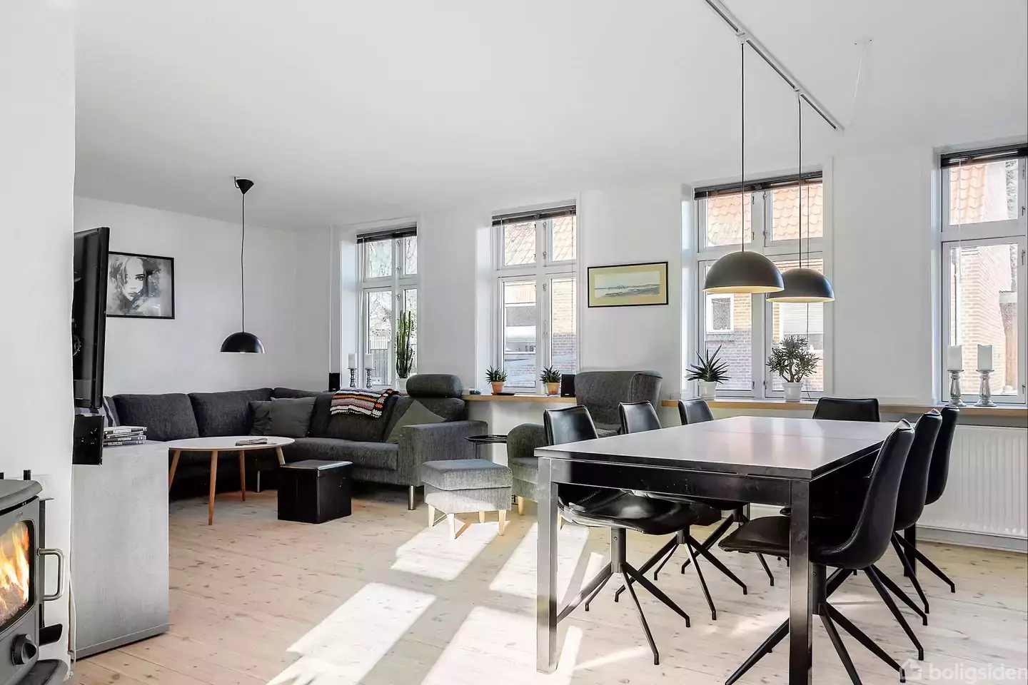 Åbent hus med tilmeldingskrav 19/2 - klik på billede - Drømmer I om et byhus med masser af plads, hyggelig og ugenert gårdhave, og kort afstand til alt kan drømmen endelig blive til virkelighed! Skovvej 10 har så meget at byde på – både hvad angår bolig og beliggenhed. Boligen er beliggende centralt i Nykøbing med få minutters gang til skole, gågade, havnen, park og Øster Strand m.v. Villaen er opført i 1910 i røde sten og er med nyere betontagsten. Huset er løbende vedligeholdt og renoveret og fremtræder derfor særdeles præsentabel, indbydende og ikke mindst indflytningsklar. Boligarealet udgør 131 m2 fordelt på 2 plan. Hertil kommer en tilbygning på 41m2, som ikke er boligareal, men anvendes til et disponibelt rum samt ekstra værelse. Til huset hører en dejlig gårdhave, som ikke kræver megen pasning, da den er belagt med fliser. Gårdhaven vender mod sydvest, så der bliver rig mulighed for at nyde solen både dag og aften. Her kan I få jeres egen lille oase. Boligens kvadratmeter fordeler sig således: Entre/bryggers med skabsarrangement, og plads til vaske-faciliteter. Fra entreen kommer man ind i et dejligt lyst køkkenalrum og videre derfra ind i opholdsstuen og spisestuen, som har et dejligt lysindfald og brændeovn. Et utroligt hyggeligt opholdsrum, hvor man har lyst til at opholde sig i timevis. Fra stuen er der udgang til gårdhaven. Fra entreen er der tillige adgang til et rigtig fint brusebadeværelse med lyst inventar. Fortsætter man videre fra entreen kommer man ud i tilbygningen, hvor der er indrettet et værelse samt et disponibelt rum. Fra værelset er der ligeledes udgang til gårdhaven. Bemærk de flotte, rustikke trægulve i stueplan. På 1. sal er der repos, soveværelse samt tre fine værelser alle med et dejligt lysindfald. Der er en skøn stemning hele vejen igennem. Et virkelig skønt byhus med en super god beliggenhed – vi glæder os til at byde jer indenfor!