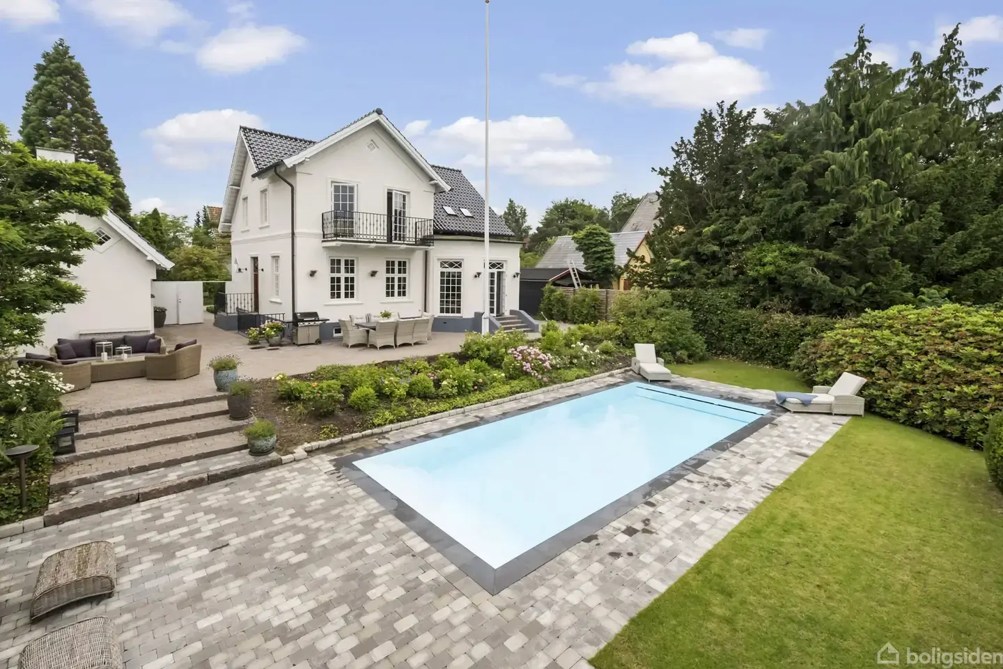 Ejendommen "Siam" er en smuk villa i Trouvillekvarteret, som er renoveret med nyere køkken, badefaciliteter samt nyanlagt swimmingpool og terrasser i flere plan.Huset indeholder 140 kvm bolig samt 32 kvm udhus/anneks med stue/køkken og bad (ikke godkendt til beboelse).Afstanden til Hornbæks smukke strand er kort, ligesom du finder bylivet med restauranter, havn og gode indkøbsmuligheder inden for ganske kort afstand.Indretningen består af flot rummelig hall med gæstetoilet. Fra hallen er der ind