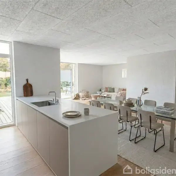 Velkommen til denne nybyggede villa i det idylliske Bredsten – perfekt for dig, der søger et moderne og indflytterklart hjem! Denne skønne villa er udstyret med alt, hvad hjertet kan begære af moderne løsninger og kvalitetsmaterialer. Boligen er opført fuldmuret, har en ekstra loftshøjde på 260 cm og er indrettet med massive indvendige døre, hvilket tilsammen giver en solid kvalitetsfornemmelse og en rummelig atmosfære.Køkken/alrummet fremstår lyst og åbent og skaber en indbydende atmosfære, hvo