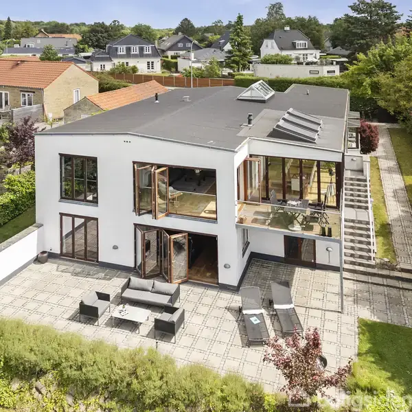 Indbydende udsigtsvilla med plads til hele familien Udsigt så langt øjet rækker, hen over trækronerne. Store foldedøre der åbnes helt op og lukker naturen ind i de lyse stuer. Smukke solnedgange i horisonten. Skal livet leves, skal det være i denne villa. Bygget i 1936 og moderniseret ad flere omgange, kombinerer villaens klassiske charme med et moderne udtryk og funktionalitet, hvilket skaber en indbydende atmosfære fra første øjeblik. Indendørs præsenterer villaen sig med en rummelig stue, h