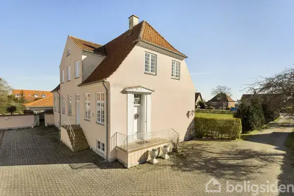 Herskabelig villa centralt i Korsør. Tilbagetrukket fra Skovvej ligger denne store villa med flotte pudsede mure, sprossede vinduer med forsatsrammer og 3 gode plan.Velkommen indenfor i stueplanet i den charmerende bolig, hvor du via mindre gang træder ind i rummeligt køkken i hvide elementer med forbindelse til både bryggers med gode vilkår for hverdagspraktikken samt direkte til en spisestue som aldrig set mage - højloftet med smuk stuk og sildebensparket samt mange høje vinduer, der inviterer