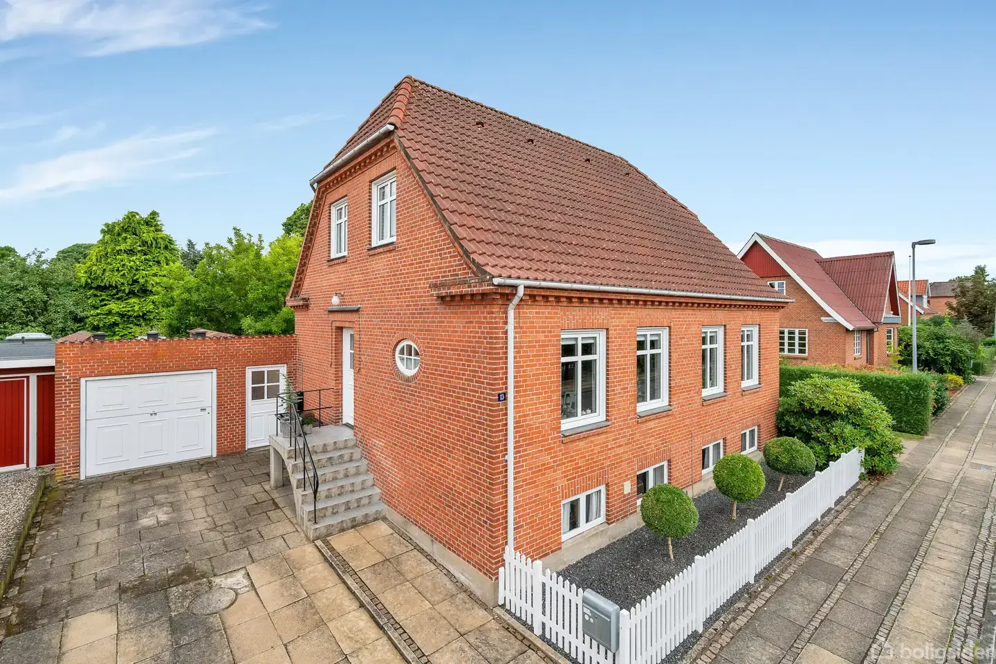 Drømmer du om en bolig, hvor klassisk charme møder moderne komfort? På Skovvejen 13 får du en flot og velholdt rødstensvilla fra 1933, som med sine mange opdateringer fremstår indflytningsklar og klar til nye ejere.Villaen præsenterer sig med røde mursten, betonstenstag fra 1999 og vedligeholdelsesvenlige PVC-vinduer. Bag facaden gemmer sig et hjem, hvor der er tænkt over detaljerne, og hvor man straks fornemmer den gode stemning. Køkkenet blev udskiftet i 2020 med en stilren løsning fra Designa