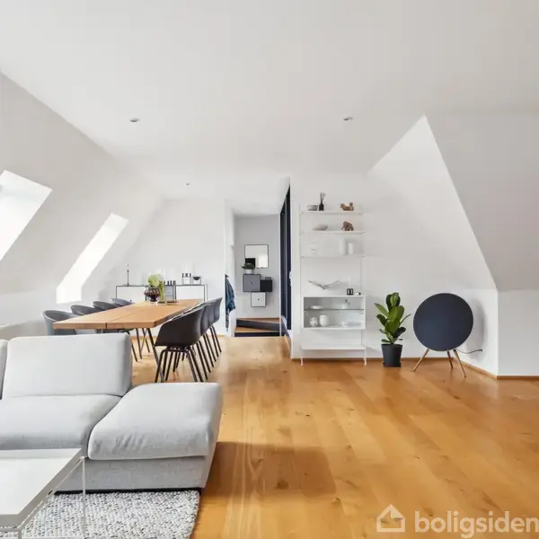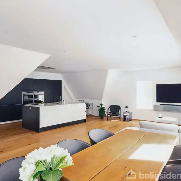 LUKSUSLEJLIGHED MED CHARME OG KARISMA · En smuttur fra Limfjordens livlige havnemiljø · På solsiden af Aalborg med ti minutters gang ind til byen · Taglejlighed med byens hyggeligste tagterrasse · Totalrenoveret med øje for luksus og komfort · En indretning, der passer til mange forskellige købere Ja, allerede fra begyndelsen står det klart, at det er et hjem lidt ud over det sædvanlige, som vi nu udbyder i hjertet af Nørresundby. Her sameksisterer moderne inventar med original charme, såvel s