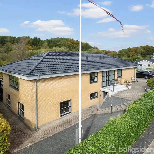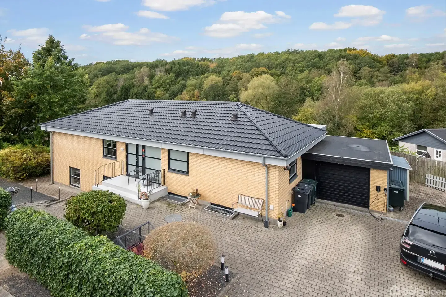 Åbent hus med tilmeldingskrav 3/2 - klik på billede - Skrænten 1 er helt klart et kig værd. Læs med her og forstå præcis hvorfor. Denne unikke villa ligger godt placeret og byder på mange muligheder. Du møder som noget af det første efter entreen et lækkert køkkenalrum med stor stue, hvor du derefter kommer videre til 3 rummelige værelser. Der er ligeledes badeværelse i stueetagen, og hvis du bevæger dig ned af trapperne, støder du på en rummelig kælder, der indeholder et stort vaskerum med depot for enden, samt et stort disponibelt rum der kan bruges til evt. opbevaring. Længere nede ad gangen støder du også på både gæstetoilet og køkken, og for enden en lækker stor gildesal, der er perfekt til hjemmefester, eller større forsamlinger. Bevæger vi os udenfor er huset indrettet med en stor terrasse hvor man kan nyde den flotte udsigt på ejendommen. Der er overdækket i den ene ende som gør det perfekt til lidt koldere dage hvor man stadig vil nyde det sidste af sommersolens glimt. En stor have gemmer sig bag huset, der byder på utallige muligheder for havelivet, og kun fantasien sætter grænser for hvad der kan laves deromme. Denne god plads giver dig rig mulighed for at sætte dit eget præg på havens natur. Og til sidst byder denne charmende villa også på praktisk garage der kan huse din bil. Lad os fortælle meget mere ved en fremvisning – kontakt os med det samme.