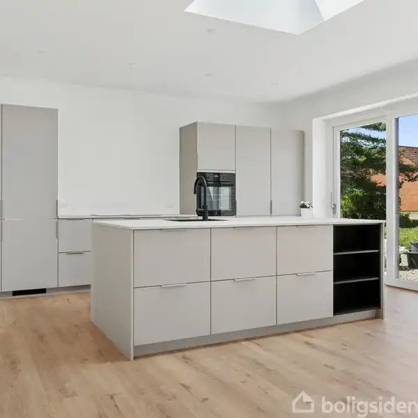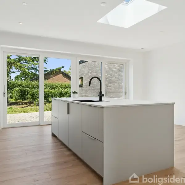 Velkommen til denne indbydende villa på 153 kvadratmeter, nyopført i 2025 og beliggende i et børnevenligt område kun 150 meter fra stranden. Her får du et hjem, der emmer af moderne komfort og funktionalitet. Boligen byder på et lyst og rummeligt køkken alrum, der åbner op mod haven gennem brede glaspartier, hvilket giver et fantastisk lysindfald og en direkte forbindelse til udendørslivet. Det moderne køkken fra KVIK er designet med fokus på både æstetik og funktionalitet, og her kan du nyde h