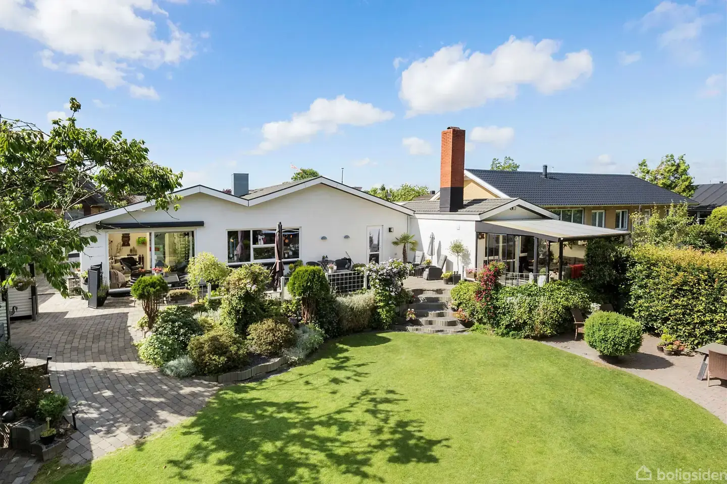 Åbent hus med tilmeldingskrav 4/2 - klik på billede - Allerede ved ankomsten til Skrænten 29 fornemmer man, at dette ikke blot er et almindeligt hus – her mødes man af en indbydende forhave, smukt anlagt med farverige blomster og grønne buske, som straks vækker nysgerrigheden og inviterer én videre. Indenfor åbner hjemmet sig med en stor, præsentabel entre, hvor der er god plads til overtøj og velkomst af gæster. Herfra er der adgang til forældresoveværelset, som ligger praktisk placeret tæt ved det flotte og nye badeværelse med bruseniche og god opbevaringsplads. Badeværelset er indrettet i lyse og tidløse materialer. Boligens hjerte er den skønne og rummelige stue, der byder på et fantastisk lysindfald, hyggelig muret pejsevæg med bænk – et oplagt samlingspunkt for familie og gæster. Fra stuen er der direkte udgang til en dejlig udestue med air cooler, hvor man kan nyde sommeren – også på kølige aftener. Køkkenet er fra Tvis – en stilren og moderne løsning med gode arbejdsforhold, masser af skabsplads og et ovenlysvindue med elektrisk åbne/lukke-funktion, som giver et behageligt naturligt lys. Køkkenet ligger i åben forbindelse med boligens øvrige rum, hvilket skaber en god sammenhæng og et åbent miljø. Derudover byder boligen på to gode værelser med ovenlysvinduer, også med elektrisk styring – ideelle til børneværelser, kontor eller gæster. Fra køkkenet er der adgang til et stort og praktisk bryggers med plads til vaskesøjle, skabe og bordplads. Herfra er der direkte forbindelse til et godt hobbyrum med gulvvarme, perfekt til den hobbyglade, samt en opvarmet garage med el-port, der også kan fungere som ekstra opbevaringsrum eller til værkstedsaktiviteter. Haven er noget helt særligt – velplejet, frodig og nem at vedligeholde. Den store sydvendte terrasse indbyder til hyggelige stunder i solen, og herfra er der adgang til endnu en udestue, som forlænger udesæsonen markant. I haven finder du også en ekstra terrasse, så du altid kan vælge mellem sol og skygge. Her er plads til både afslapning, leg og grønne sysler – alt sammen i rolige og private omgivelser. Skrænten 29 ligger på en fredelig og børnevenlig villavej midt i Struer, tæt forbundet med stisystemer, der fører direkte til både daginstitutioner, skoler og Struers hyggelige midtby med gågade og det attraktive havnemiljø. Desuden er der gode indkøbsmuligheder i flere dagligvarebutikker i kort gåafstand. Dette hjem fremstår pænt, indflytningsklart og velholdt med en skøn kombination af moderne faciliteter og masser af sjæl og hygge. Her er løbende foretaget forbedringer – blandt andet nye gulve i stue, køkken, gang og værelser, hvilket giver et sammenhængende og lyst udtryk gennem hele boligen. Er du nysgerrig? Så kontakt os allerede i dag for en fremvisning. Ring på 97851900 – vi fremviser alle ugens dage og glæder os til at vise dig dette skønne hjem!