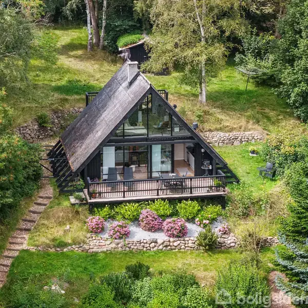 På bakketoppen, omgivet af smukke stensætninger og uberørt natur, finder du Skrænten 9 – et fristed, hvor roen sænker sig, og naturen er helt tæt på. Midt i det fredelige sommerhusområde på Helgenæs venter et lyst og indbydende hus. Her er et skønt opholdsrum med køkkenafdeling, brændeovn og direkte adgang til en stor østvendt træterrasse med udsigt over det kuperede landskab. Et hyggeligt soveværelse og et badeværelse med bruseniche fuldender stueplanen. Førstesalen er ét stort, fleksibelt rum med gulv-til-loft-vinduer, der lukker lyset og naturen helt ind. Herfra er der udgang til en solrig sydvestvendt altan – perfekt til morgenkaffe, aftensol eller bare en stille stund. Overalt mærkes den nære forbindelse til naturen, understøttet af tidløse og smagfulde materialer. Mod sydvest ligger en hyggelig, læfuld gårdhave, hvor udelivet kan nydes i fred og ro. Grunden er anlagt i plateauer med små kroge og frodig beplantning, og på toppen grænser den direkte op til åbne marker. Derudover er der et praktisk udhus til opbevaring. Helgenæs er en perle i Syddjurs Kommune – en halvø med 27 kilometer kystlinje, hvor du kan være heldig at spotte både marsvin og sæler. Her finder du plads til fordybelse, opladning og ren afslapning. Skrænten 9 er ikke bare et sommerhus – det er selve definitionen af fritidsdrømmen.