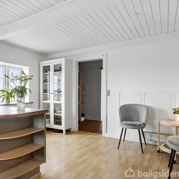 Landlig villa fra 1900 beliggende imellem Vejen og Rødding på en nem grund. Boligen emmer af charme og varme og byder på veludnyttede kvadratmeter, hvor de lyse lofter og synlige bjælker samt rummelighed skaber en harmonisk atmosfære. Indrettet med rummeligt bryggers/entre med oliefyr og trappe til 1.salen, som er indrettet med 3 værelser og et repos. Fra bryggerset er der adgang til lyst badeværelse. Funktionelt køkken med lille spiseplads. Opholdsstue opdelt i en spiseafdeling og tv/hygge af