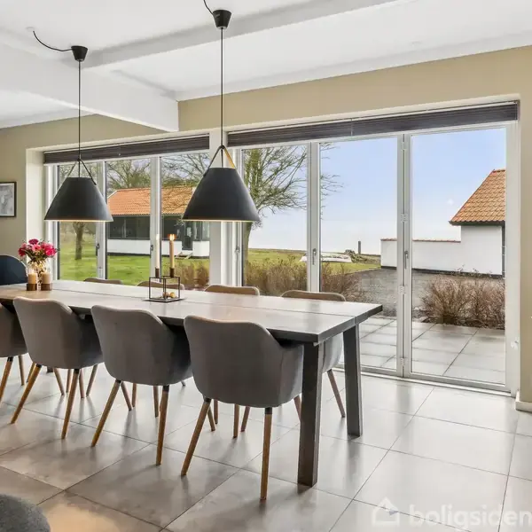 Storslåede solopgange og solnedgange, funklende stjerner på en mørk nattehimmel samt en enestående placering i udkanten af Stege By, hvor privatlivet er i højsædet og afstanden til bymidten er marginal, er blot noget af, hvad man kan se frem til, ved at flytte ind på Skydebanevej. Hvis ikke forhold som uhindret udsigt over Stege Bugt, grund ned til "daglig vande", komplet istandsættelse med fokus på komfort, elegance og gennemførte detaljer, er der ikke nogen grund til at læse videre. Hvis du til gengæld som sælgeren her - gerne vil bo lidt bedre en gennemsnittet og sætter pris på lækre detaljer, kan ejendommen byde ind med en masse af det. Oprindeligt har tanken med ejendommen sikkert været at det "bare" skulle være en ejendom som de fleste andre i kvarteret, men nuværende sælger har egentlig bare gået "all in" og transformeret alle elementer af såvel det udvendige som det indvendige, til at blive det sted det er i dag, med stramme linjer og løsninger, som man ikke ser på hvert gadehjørne. Sælger har siden deres køb i 2018, forestået en komplet transformation, til det resultat vi ser i dag og naturligvis med respekt for ejendommens oprindelige arkitektur. En ejendom med 'højt til loftet', hvor man hurtigt finder ro, her er også et græsareal og en masse af hyggekroge giver mulighed for fordybelse, med plads til venner og familie, ude som inde og stort set ligegyldigt på hvilket tidspunkt af døgnet, man ønsker at nyde solens stråler, der smukt reflekteres i vandet og kaster sine stråler ind i ejendommen. Indkørslen er lang og ender på det store parkeringsareal, hvor de andre 2 bygninger - i form af bådhus ved siden af slæbestedet til båden og yderligere større orangeri - naturligvis også orienteret ud mod vandet og egentlig blot er med til, at give det hele mere kant. Haven er relativ åben, så udsigten og lyset får optimale betingelser, det meste er plæne og prydbeplantning, ligesom haven har fantastiske terrasser og mange hyggelige kroge, hvor man kan nyde en kop kaffe, en god bog eller Møns fantastiske stjernehimmel, der har fået det anerkendte certifikat, Dark Sky. Ejendommen ligger for enden af en lukket, rolig villavej i gåafstand, langs vandet, til Stege bys eftertragtede café og shoppingliv, hvor der er muligheder for besøg i fine specialforretninger som vinspecialister, gallerier og på lækre restauranter. Ligeledes er Stege by, ligesom hele Møn, berømt for sit rige kulturliv. Det charmerende ydre og stramme linjer går igen inde i boligen, hvor I også kan glæde jer over et enestående lysindfald. Plads er der rigeligt af og sælger har i den grad optimeret ejendommen, så alt bare spiller og de forskudte plan gør noget helt særligt ved stemningen. Der er naturligvis gulvvarme i hele stueplanet og på 1.salen er der radiatorer. Entre`en byder velkommen og er det naturlige sted at starte, hvor alt ligesom forgrener sig ud fra og samtidig også her, den murede trappe leder en op til 1.salen. Hjertet i ejendommen er det store åbne og smukt sammenhængende - kombinerede køkken og stue, nærmest som en hel symbiose. Køkkenet er holdt i hvidt med grebsfrie træelementer og alt i hvidevarer - de store vinduer i facaden sørger for masser af lys og udgangen til det store loungeområde fuldender fuldstændigt billedet og giver en følelse af mere end bare komfort. Stuen ligger i naturlig forbindelse med køkkenet og rummer plads til både spisestue og dagligstue og får ligesom det hele til at hænge endnu bedre sammen. Her er elegant badeværelse - nærmest som et helt wellness område og ydermere udgang til haven, så man uhindret og uafhængig af årstiden, kan slentre ned og bade. Det store kombinerede bryggers/baggang er med masser af skabsplads, arbejdsplads og naturligvis også her, hvor både vaskemaskine og tørretumbler er installeret. For enden ad trappe til 1.salen - mod vest - bliver man - ligesom alle de andre steder i ejendommen - mødet af den blændende udsigt over vandet og her har sælger valgt at dedikere rummet til et stort soveværelse - men kunne lige så godt være en stue, atelier eller andet og her er yderligere 2 gode børne/gæsteværelser. Vi syntes her er tale om noget unikt - for den kræsne køber der værdsætter kvalitet og 'EASY LIVING'.