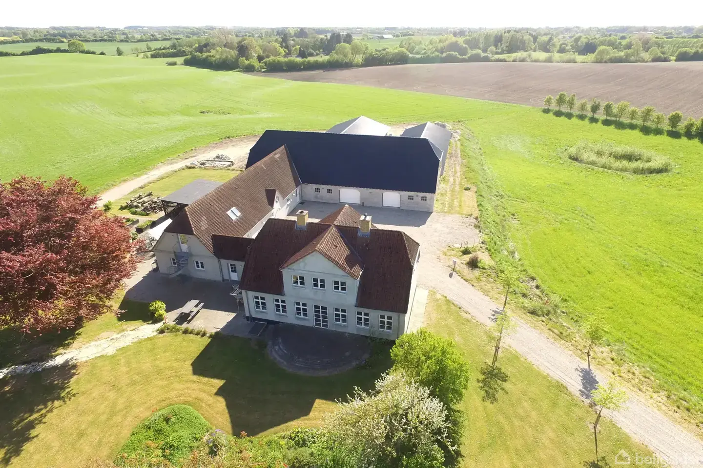 Velkommen til Skydsbjergvej 23 – en charmerende og rummelig landejendom med utallige muligheder, beliggende i naturskønne omgivelser i rolige Fjellerup. Her får du ikke blot en veldisponeret bolig med masser af atmosfære, men også mere end 1.000 m² udbygninger, som åbner op for både erhverv, hobbyliv eller store familieaktiviteter.Hovedhuset er på 188 m2 bolig og planløsningen er oplagt til både den store familie og dem, der ønsker god plads omkring sig. Indenfor mødes du af lyse og indbydende o