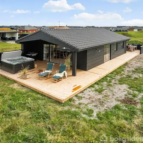 Med en fuldstændig enestående placering lige op ad klitlandskabet og med Vesterhavet liggende lige bagved, får I her et fritidshus, der i sjælden grad forener natur, ro og moderne komfort. Området er kendetegnet ved det åbne, fredelige landskab, hvor marehalm, klitter og den friske havluft danner rammen om et afslappet fritidsliv - perfekt til både ferier og forlængede weekender året rundt. Efter en gennemgribende renovering i 2024 og 2025 fremstår fritidshuset fra 1977 yderst velholdt og med et gennemført, stilrent udtryk, hvor farver, materialer og detaljer er nøje afstemt for at skabe en lys og indbydende helhed. Man kan se, at renoveringen har haft fokus på de gode detaljer, som folder sig ud over husets forskellige rum. Indvendigt byder boligen på et åbent opholdsrum, hvor køkken og stue smelter naturligt sammen og fungerer som husets samlingspunkt. Her strømmer dagslyset ind gennem vinduerne og understreger den rolige stemning, mens udsigten til det omkringliggende landskab konstant minder jer om den særlige beliggenhed. Køkkenet er moderne og funktionelt indrettet med god bordplads og opbevaring. Planløsningen er veludnyttet med i alt tre soveværelser, samt et flot badeværelse udført i tidløse materialer med en rolig, spa-lignende atmosfære - og som en ekstra luksuriøs detalje er badeværelset udstyret med dobbeltbruser. Udendørs fortsætter den gennemførte oplevelse med terrassemiljøer rundt om størstedelen af ejendommen, så I altid kan finde en solplet, uanset tidspunkt på dagen. Den østvendte del af terrassen er særligt afskærmet og indbydende, og her samt på de øvrige terrassearealer kan udelivet nydes i fulde drag. Som prikken over i'et er der jacuzzi på terrassen, hvor I kan slappe af og nyde aftenerne under åben himmel med lyden af havet i baggrunden. Grunden er stor og naturskønt beliggende og smelter harmonisk sammen med det omgivende klit- og hedelandskab, hvilket giver en sjælden følelse af ugenerthed og nærhed til naturen. Samlet set er der tale om et særdeles attraktivt fritidshus for den kvalitetsbevidste køber, der drømmer om en moderne og komfortabel base midt i noget af Vestkystens smukkeste natur - med klitterne som nærmeste nabo og stranden lige om hjørnet. Området omkring Vrist og Vejlby Klit byder på et væld af oplevelser - fra vandreture i klitterne og badeture ved den brede, børnevenlige strand til aktiviteter som golf, ridning, windsurfing og Harboøre Centeret med masser af tilbud til både børn og voksne. I bor desuden tæt på indkøb, og det er let at tage en tur til Lemvig eller Thyborøn, hvor både havnemiljø, kultur og hyggelige spisesteder venter. Denne perle skal opleves, kontakt os på 96 63 40 00 for en fremvisning.