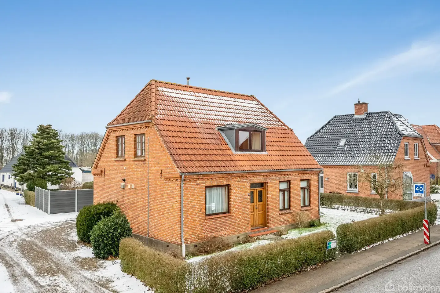 Slogsherredsvej 19 er et klassisk murstenshus opført i røde sten og med rødt cementstenstag, som er cirka 20 år gammelt. Boligen opvarmes via et nyere gasfyr fra 2024, hvilket giver et tidssvarende udgangspunkt for varmeøkonomien.Ejendommen er særdeles velbeliggende med kort gåafstand til skole, aktivt idrætscenter, forsamlingshus, legepladser, offentlig transport og ikke mindst indkøb, hvilket gør hverdagen både nem og bekvem for hele familien.Indvendigt byder boligen på et praktisk bryggers, e