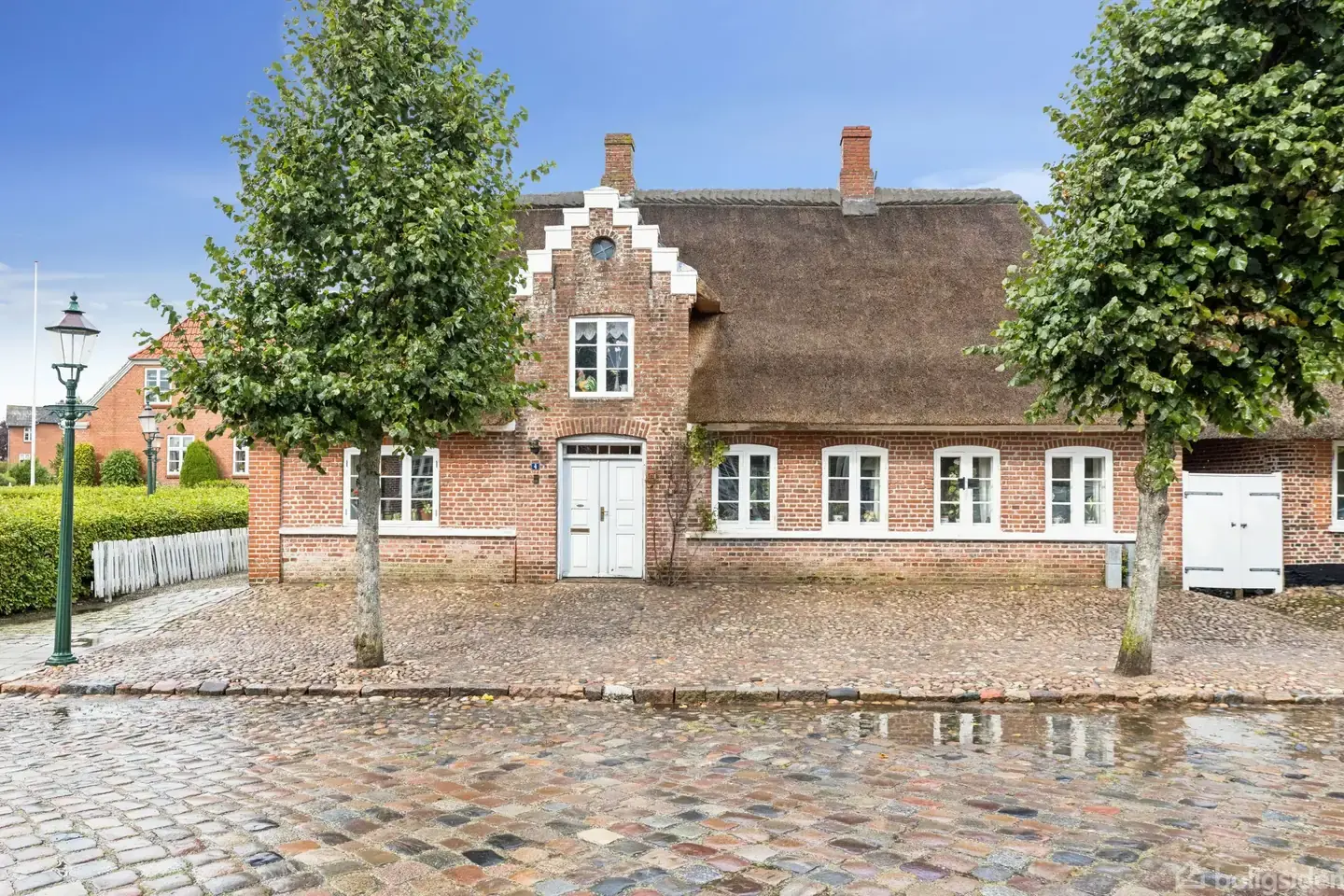 Med en nærmest eventyrlig beliggenhed med udsigt til det smukke kirkespir fra haven og tæt på Schackenborg Slot ligger denne charmerende ejendom. Den brede allé af fredede lindetræer og den brostensbelagte hovedgade byder velkommen til denne ejendom, som kun har én nabo. Ejendommen nyder godt af masser af lysindfald. Mod vest ligger "Det lille torv - Æ Stjærn", hvor der er opsat en buste af Jens Jessen omkranset af bøgehæk Haven er velopvokset, og der findes en ældre carport med tilhørende udhus. Ejendommen er opført i massive røde teglvægge med hvide vinduer og stråtag. Opvarmningen sker via naturgas. Der er en god indretning med entré, to stuer, tre værelser, badeværelse, et lyst køkken med et vaskerum samt bagindgang med udgang til haven. Ejendommen er fredet, og der er bopælspligt. Den nuværende ejer har boet der siden 1997, men er nu flyttet til en mindre bolig. Er denne bolig noget for dig? Så ring og book en fremvisning. Mojn og velkommen til Slotsgaden 4, Møgeltønder, 6270 Tønder.