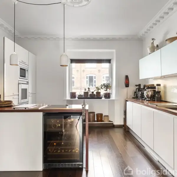 Selv hvis man fik helt frie hænder, er det umuligt at gengive stemningen fra denne helt og aldeles unikke lejlighed på Smallegade skråt overfor Sokkelunds Café 100 meter fra Frederiksberg Have. Bygningen fra 1883 er i sig selv noget særligt og især gården, der om sommeren er fuld af tunge vinklaser massevis af figner fra de to figentræer, skaber den unikke stemning, og gør ejendommen til noget helt særligt. Boligen indeholder blandt andet et Poggenphol-køkken, eksklusive trægulve og en superfin