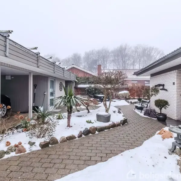 På en fredelig adresse i det attraktive og naturskønne Nørup finder du denne meget velholdte og stemningsfulde villa, hvor både hus og have emmer af hygge, ro og overskud. Her er tale om et hjem, der skiller sig positivt ud fra mængden – både i indretning, atmosfære og ikke mindst de skønne udenomsarealer. Boligen rummer hele 178 m², hvoraf 20 m² er en dejlig udestue, der forlænger sæsonerne og binder hus og have smukt sammen. Indretningen er anderledes end i det klassiske parcelhus, da der her er prioriteret store, sammenhængende leverum frem for mange små rum. Køkkenet med spiseplads ligger i naturlig forlængelse af spisestuen, og herfra er der videre adgang til endnu en hyggelig dagligstue. Store vinduespartier trækker lyset ind og giver et fantastisk kig til haven og de grønne omgivelser – uanset hvor du opholder dig i huset. Fra dagligstuen er der direkte adgang til udestuen, som bliver et oplagt opholdsrum det meste af året. Boligen rummer desuden tre gode værelser med mulighed for etablering af et fjerde, et pænt badeværelse samt et praktisk bryggers med egen ind- og udgang. Ejendommen er desuden udstyret med solcelleanlæg, som bidrager til en lavere elregning og en mere energieffektiv hverdag. Til huset hører carport samt et godt, anvendeligt udhus, der giver ekstra plads til opbevaring, værksted eller hobbyaktiviteter. Haven er noget helt særligt og vidner om ejere, der virkelig har haft grønne fingre og sans for detaljen. Her er smukt anlagte bede, træer og buske, der skaber liv, farver og variation året rundt. De mange terrasser omkring huset gør det let at finde både sol, skygge og læ – perfekt til både hverdag og hyggelige stunder med familie og venner. Beliggenheden i Nørup kombinerer det bedste fra to verdener: fredelige og naturrige omgivelser med kort afstand til både Bredsten, Vejle og hverdagens faciliteter. Her får du et hjem med sjæl, plads og en helt særlig stemning – både inde og ude. En bolig, der skal opleves. Har du spørgsmål eller ønsker du boligen fremvist, så kontakt RealMæglerne Bent & H.B. Nielsen på tlf. 7572 3333 eller på mail [email protected]