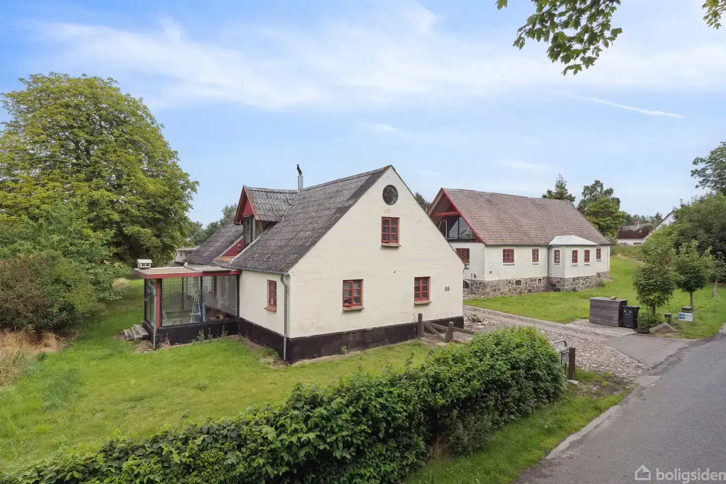 Mulighedernes charmerende ejendom! Velkommen til denne charmerende ejendom, hvor mulighederne står i kø for at blive udlevet. Hovedhuset er blandt andet indrettet med; Rummelig entre, stort værelse med god skabsplads, pænt stort badeværelse med brus, deligt stort åbent køkken/alrum med direkte udgang til den skønne have, og samtidig med udgang til mindre havestue. Bryggers med plads til vaskemaskine og her er også installeret effektiv luft til vand varmepumpe. Fra bryggers er der trappe til 1.