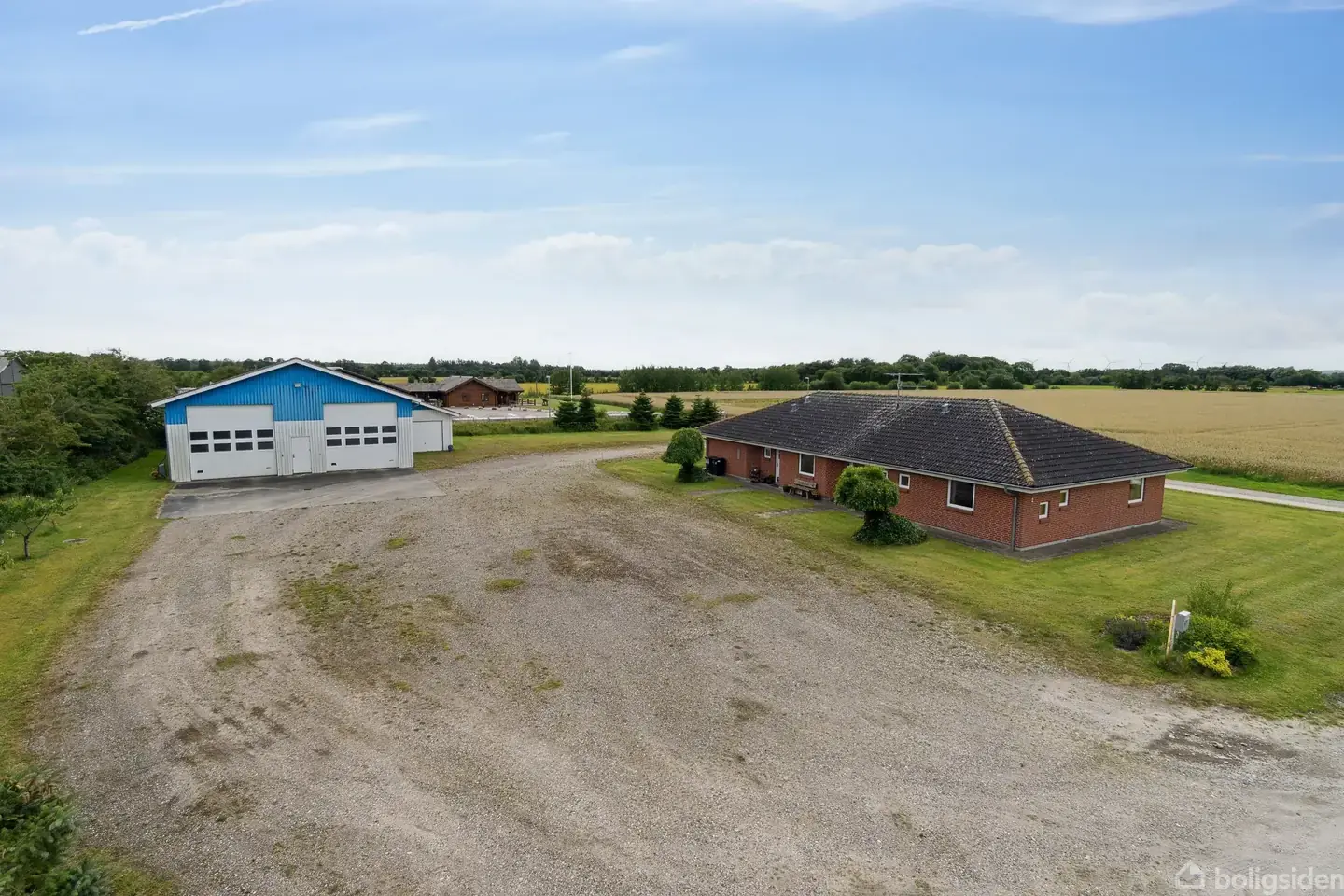 På Snedkervej 2 i Øster Hurup finder du en imponerende ejendom, perfekt til både bolig og erhverv.