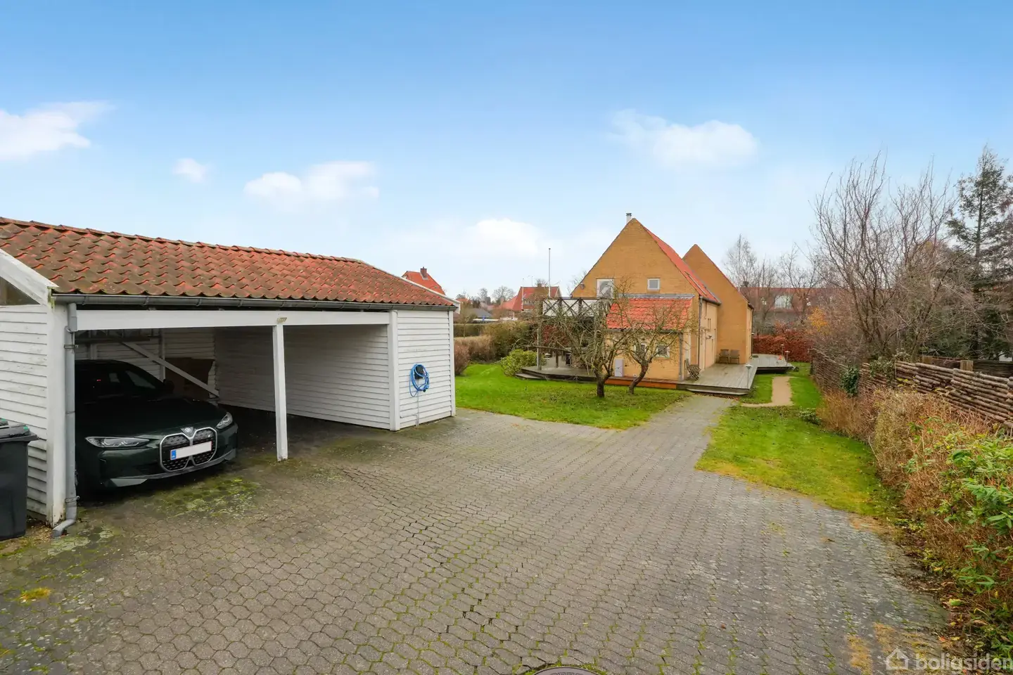 Velkommen til dette indbydende halve dobbelthus, der ligger fredeligt og tilbagetrukket på en solrig grund på hele 1.090 m². Her får I 141 m² veldisponeret bolig med masser af lys, luft og en fantastisk beliggenhed i hjertet af børnevenlige Gentofte. Boligens højdepunkter: -Halvt dobbelthus på stor, solrig grund -141 m² funktionel bolig -3 gode soveværelser -2 badeværelser -Carport og stort terrassemiljø -Energimærke B -Opført i 1984 af Bent Moestrup Huse A/S -Klassisk i gule tegl og rød