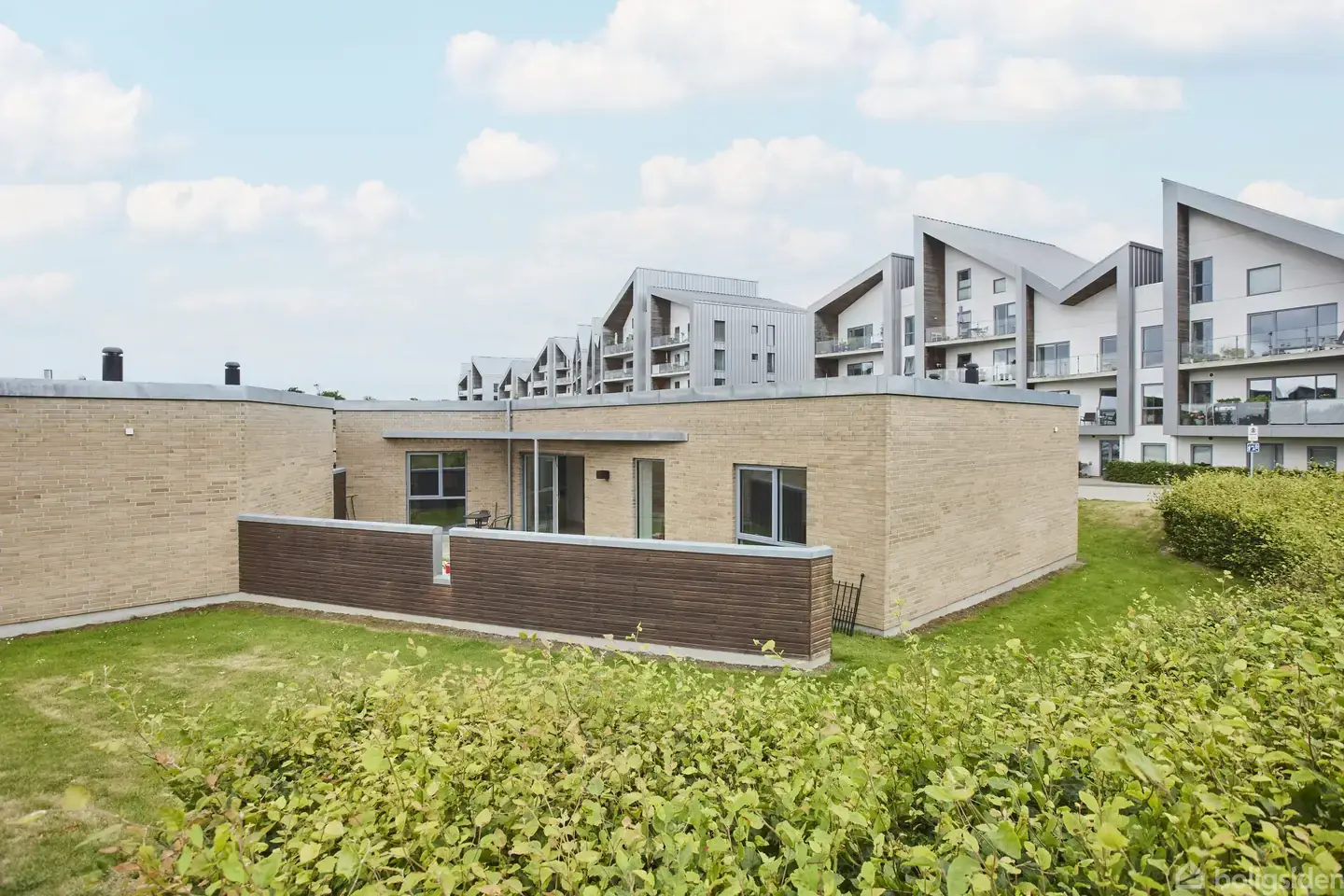 Hermed udbydes en af de eksklusive og meget eftertragtede gårdhavehuse i Søbyen, som er beliggende med den unikke kombination af fantastisk beliggenhed ved Lillesø og gå-afstand til alt i Skanderborg. De 131 lækre og fuldstændig vedligeholdelsesfri m² er lige netop så lyse og velindrettede, som du kunne forvente af en nybygget bolig - og det selvom denne ejendom er opført i 2018. Her er et stort bryggers, et teknikrum, hvor der også er fin plads til opbevaring, badeværelse samt gæsteværelse/ko