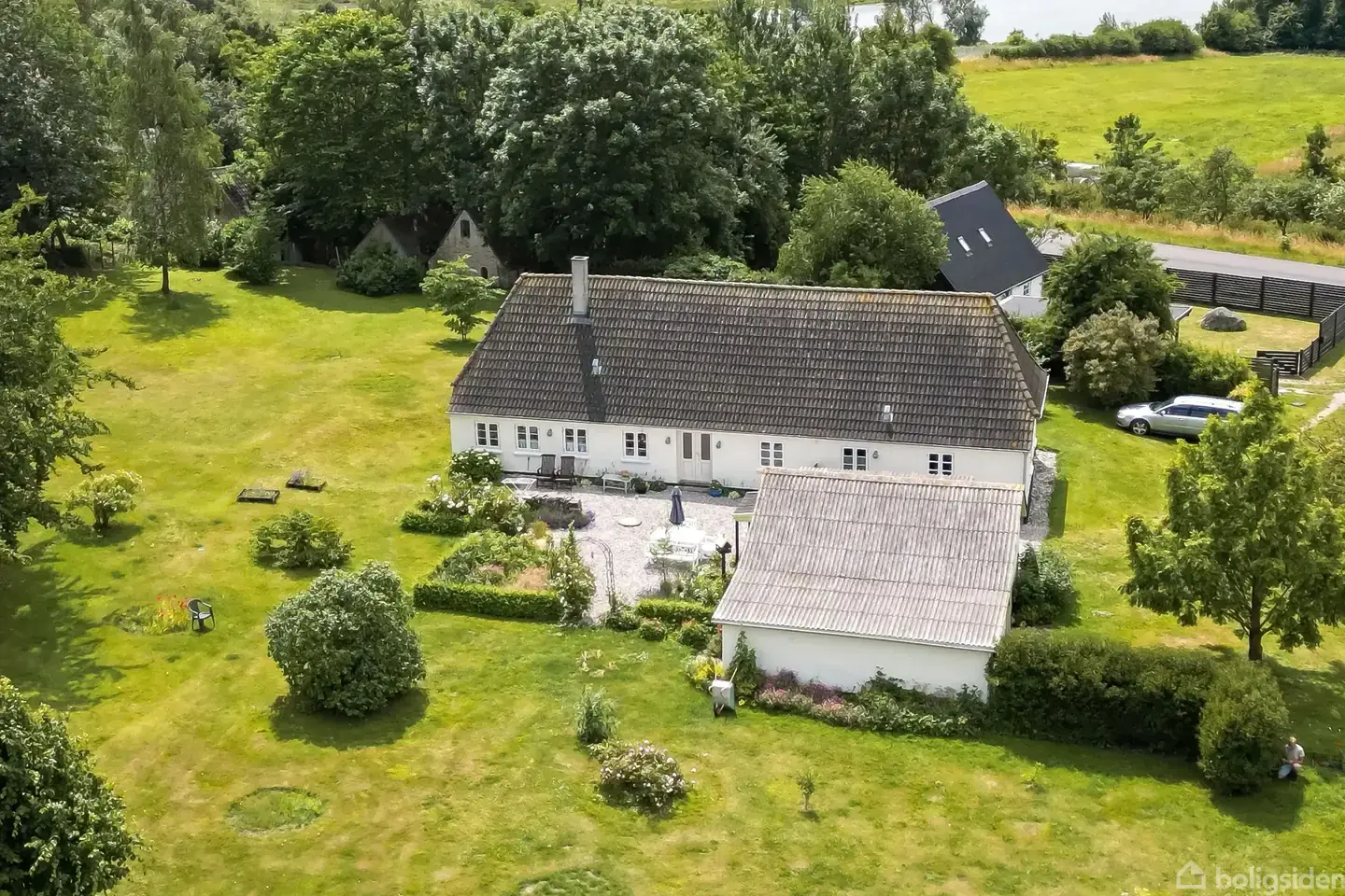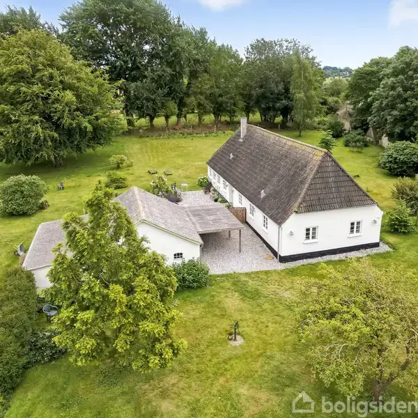 Rart tilbagetrukket fra vejen sælges denne herlige ejendom. Boligen fremtræder i perfekt stand og den ligger naturskønt omgivet af 15.000 m2 mark og have. Her er PODA hegn, fint fårehus og en pragtfuld have omkring huset. OBS! Mulighed for tilkøb af yderligere ca 2 ha jord direkte til ejendommen. Boligen indeholder: Entre med adgang til bryggers / vaskerum med vaskemaskine Dejligt stort landkøkken med udgang til haven. Stor opholdsstue med ny brændeovn fra 2025 Lidt mindre stue. Fordelergang med adgang til Badeværelse med bruseniche, karbad, væghængt toilet og håndvask. Soveværelse og værelse. Depotrum. Huset opvarmes med effektiv varmepumpe luft til vand. Meget lav varmeudgift. Carport og udhus samt hønsehus. Hyggelig gårdhave og smuk beplantet og indhegnet have. I den tilhørende mose er der et væld af træer, så man kan være selvforsynende med brænde. Ideel for jer som leder efter en bolig i god stand og med mulighed for dyrehold og masser af plads til at etablere køkkenhave. Gennemgribende istandsat med nye vinduer, tag, luft-vand varmepumpe, elinstallationer, gulvvarme i flere rum. Sælger har i flere år haft fårehold og der medfølger hø, havetraktor og meget mere for dem som kan have interesse i det. Ingen bopælspligt, så ejendommen kan også benyttes som fritidsbolig.