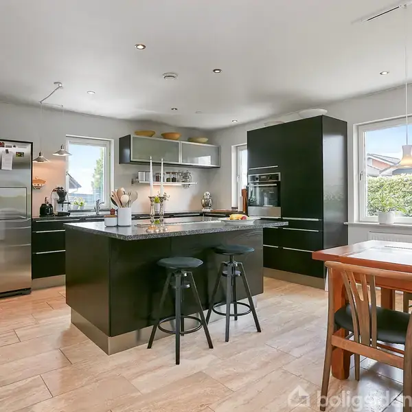 Her får du både moderne komfort, god plads og en fantastisk udsigt over Ring Sø fra den store altan.Huset er opført i 2009 og fremstår stadig nutidigt og indbydende. Der er løbende moderniseret – bl.a. med opdateringer i 2012 og nye badeværelser i 2016.I stueplan bydes du velkommen i en rummelig entré med adgang til badeværelse, to gode værelser samt soveværelse med tilhørende walk-in. Hjertet i huset er det store køkken-alrum, som ligger i åben forbindelse med bryggerset – herfra er der direkte