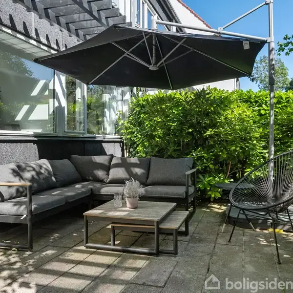 Stilren stuelejlighed med solrig terrasse og topkomfort