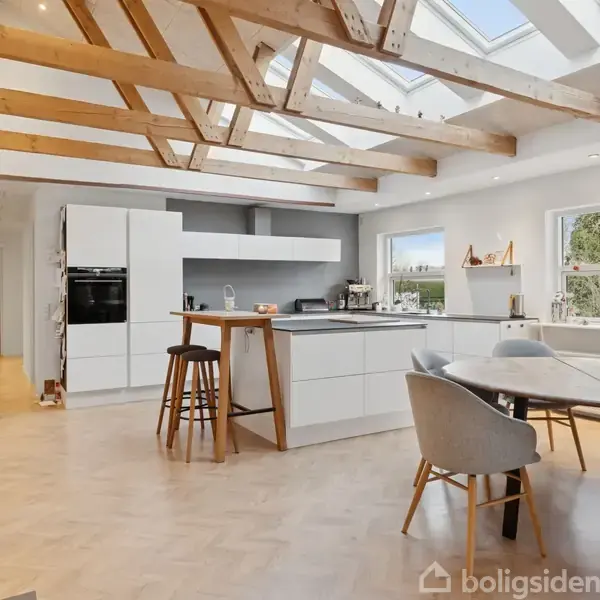 Denne rummelige og gennemrenoverede villa i Dianalund forener moderne komfort med en sjælden følelse af fred, frihed og masser af plads. Her får du en bolig, hvor der er tænkt på både samvær og privatliv, og hvor hver en detalje bidrager til en harmonisk helhed. Boligens hjerte er det store, lyse køkken-alrum med loft til kip, ovenlysvinduer og fritlagte spær, der skaber en luftig og indbydende atmosfære. Køkkenet er en elegant Svane-udgave fra 2022 med rene linjer, viktualierum og alt, hvad den madglade familie kan ønske sig. I forlængelse ligger spisestuen, som har nedgravet vinrum, og mellem dette opholdsmiljø og dagligstuen agerer en muret pejseindsats rumdeler. Dagligstuen er kæmpestor, enormt lys og indbydende. Villaen rummer også hele seks værelser, som giver fleksibilitet til både børnefamilien og dem, der ønsker kontor, hobbyrum eller gæsteværelser. Hertil kommer to flotte badeværelser – et stort og luksuriøst fra 2024 samt et mindre, nyt badeværelse fra 2025. Bryggerset sørger for hverdagens praktiske ærinder. Fra den vældige stue åbner terrassedørene til et fantastisk udeområde med feriestemning året rundt. Her finder du en stor træterrasse fra 2022, en opvarmet saltvandspool og en flot glaspavillon fra 2023, hvor sommeraftenerne kan forlænges i læ og varme. Resten af haven er vedligeholdelseslet og komplet ugeneret af omgivelserne. Ejendommen ligger på en stille vej med udsigt til åbne marker og en ridebane, men samtidig er der kort gåafstand til skole, idrætshal, boldbaner, indkøb og offentlig transport. Her bor du med landlig ro tæt på alle hverdagens gøremål.