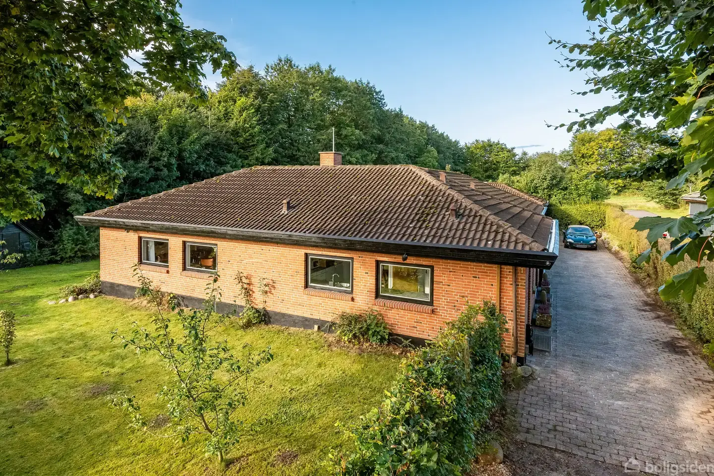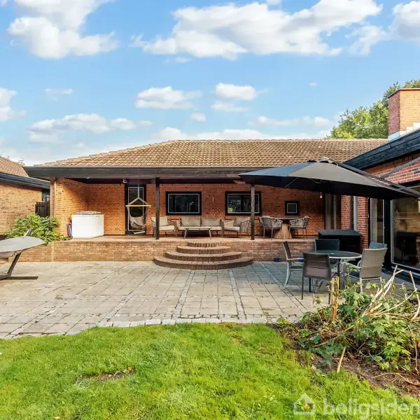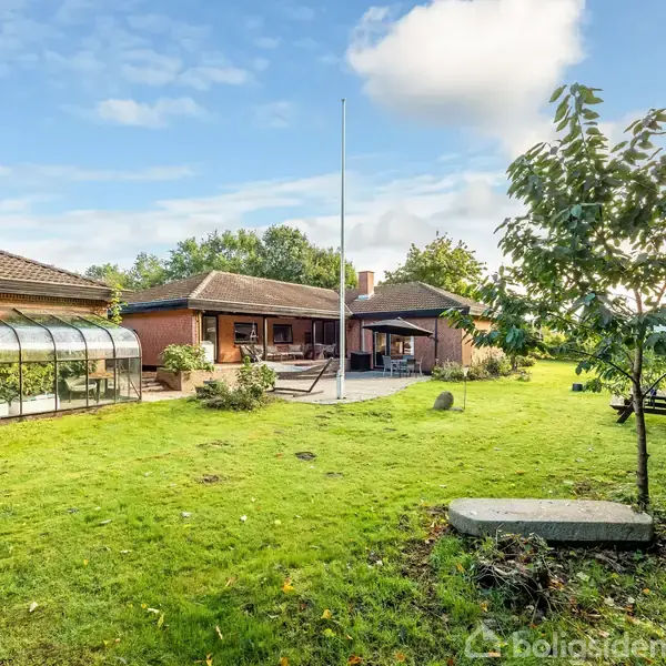 Familievenlig villa med god plads ude som inde. Stor garage med værksted.