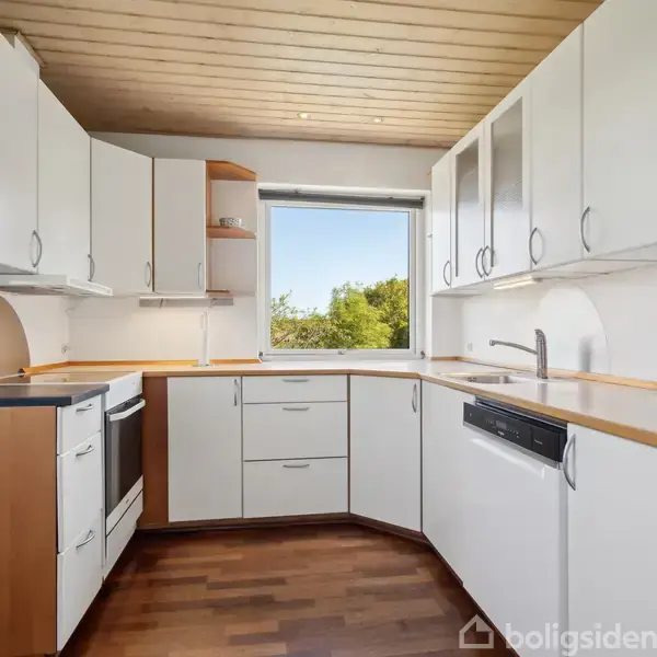 Når man ankommer til Sønderbakken 1 i Ørsted, mødes man straks af en villa der fremstår velholdt og indbydende. Den rolige vej danner rammen om et trygt og indbydende lokalmiljø, og den hyggelige stemning opleves med det samme. De omkringliggende grønne arealer sikrer privatliv, og den kuperede have fremstår med flotte bede, smukke træer og skønne hyggekroge. En skøn oase at tilbringe sin fritid i. Til boligen hører god carport med plads til bilen, flere gode udhuse samt underjordisk garage.Ørst