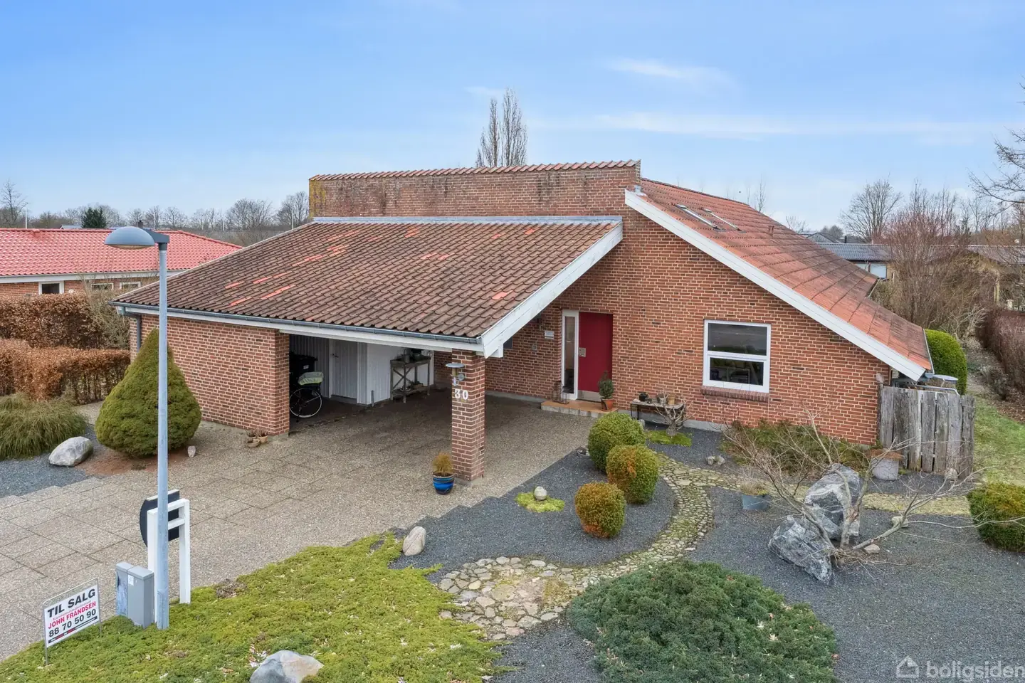 På Sønderborgvej 30 i Bording finder du denne velholdte og velindrettede villa, som er beliggende på en rolig og lukket vænge med minimal trafik. Her får du en tryg og fredelig beliggenhed i et attraktivt og børnevenligt område, hvor hverdagen kan nydes i rolige omgivelser – perfekt for børnefamilien såvel som for parret, der ønsker god plads og en velfungerende bolig.Boligen byder velkommen via en rummelig entré med god plads til overtøj og opbevaring. I forlængelse heraf ligger det praktiske b