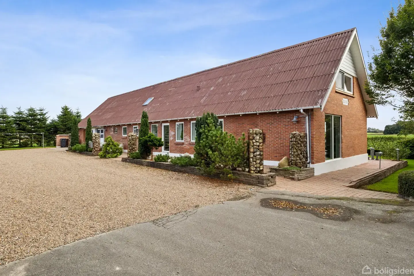 Velholdt ejendom beliggende i Sejerslev, opført i røde mursten og med hvide træ/alu vinduer. Her er både et stort boligareal, en virkelig god garagebygning, og en grund på hele 7.178 m2Indretning: Stueplan byder på stort bryggers med udgang til dobbelt garage, stue i åben forbindelse med det store køkken alrum, hvorfra der er udgang til havestue. soveværelse og badeværelse.Stueplanet er renoveret i 2019, og her er træbetonlofter og desuden gulvvarme overalt.Første sal er indrettet med hele 4 sov