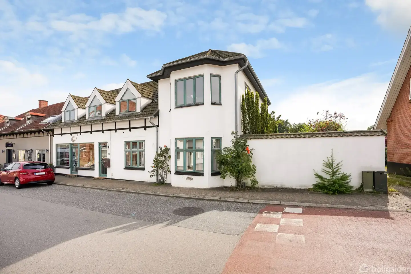Charmerende ejendom med bolig og erhverv – centralt i UldumVelkommen til denne unikke ejendom beliggende midt på Søndergade i hjertet af hyggelige Uldum! Her får du en spændende kombination af bolig og erhverv, hvor mulighederne er mange og placeringen ideel.Erhvervsdel – 50 kvm med potentialeErhvervsdelen rummer ca. 50 m² med store vinduespartier ud mod gaden – perfekt til butik, klinik, showroom, kontor eller noget helt fjerde. Her får du også et stort baglokale med god opbevaringsplads og pra