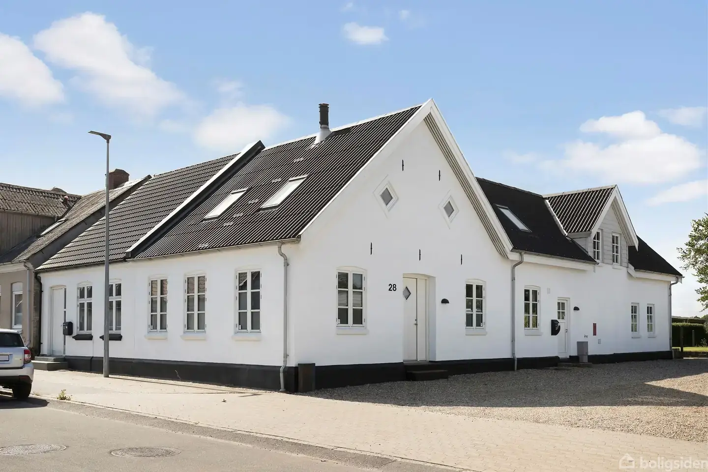 Åbent hus med tilmeldingskrav 15/2 - klik på billede - Ejendommen på Søndergade 28, 6580 Vamdrup, er et rummeligt byhus på 216 m² fordelt over to plan. Huset fremstår i pæn og velholdt stand, og der er blevet installeret fjernvarme, hvilket sikrer en moderne og energieffektiv opvarmningsform. Beliggende i hjertet af Vamdrup, er man i gå- og cykelafstand til byens mange faciliteter såsom skole, offentlig transport, indkøbsmuligheder, butikker og kulturtilbud. Indvendigt rummer huset et lyst køkken med spiseplads, et badeværelse og et gæstetoilet og to stuer – en på hver etage – hvilket giver mulighed for adskilte opholdsrum. I stueetagen finder man desuden en spisestue og et praktisk bryggers, der leder videre til et tilhørende værksted. Udendørs har ejendommen egen parkeringsplads samt en lille have, som byder på gode muligheder for afslapning eller hverdagsliv. Nærområdet inviterer til naturoplevelser med stisystemer, der fører til Margrethelund Skov, hvor man kan nyde både legeplads og hundeskov. Huset kombinerer funktionalitet og komfort i et attraktivt område tæt på natur og byliv.