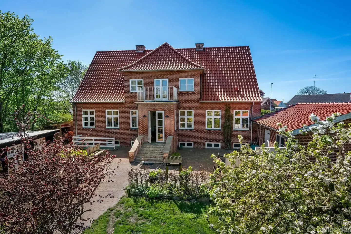 Smuk og harmonisk herskabsvilla opført i røde teglsten og med rødt tegltag. Hele ejendommen er for nylig blevet omfuget og fremtræder såvel udvendigt som indvendigt i rigtig god og velvedligeholdt stand. Ejendommen er i årevis af de mange lokale - og i øvrigt fuldt berettiget - kaldt byens smukkeste hus. Outrup er en driftig by med masser af iværksætteri, skole, indkøbsmuligheder samt sports- og kulturliv. Fra ejendommen er der let adgang til offentlige transportmidler, om så vejen måtte gå mod Nr. Nebel, Oksbøl eller Varde. Denne ejendom er ganske enkelt værd at flytte efter, idet den rummer alt, hvad en moderne familie måtte efterspørge. Ejendommen har tidligere tjent som lægebolig, men anvendes i dag udelukkende som privat bolig. I ejendommens stueplan er der entré, gæstetoilet samt kontor. Stort og dejligt køkken. Skønt alrum med smuk glaskarnap mod haven. Dejlig opholdsstue med brændeovn. En smuk trappe fører til husets tagetage, der byder på en repos, der giver adgang til husets tre børneværelse samt det store og meget smukke soveværelse med walk-in closet samt adgang til et skønt badeværelse med sindrigt konstrueret bruseniche med hele to brusere. Der er fuld kælder under huset med masser af gode og særdeles funktionelle rum samt et toilet. Stor lukket garage, som er opført i samme stil som huset. Bag de to bygninger er der en stor, dejlig baghave med et flot og meget anvendeligt gæstehus med udekøkken med videre. Lad dig ikke gå glip af muligheden for at få fremvist denne villa, som er i absolut i særklasse.