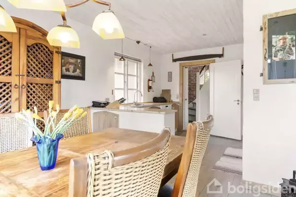 Velkommen til denne charmerende og rummelige villa beliggende centralt i Ejstrupholm på Søndergade 38. Med sine 208 m² fordelt på velindrettede rum er denne bolig ideel til børnefamilien eller 2. gangs købere, der søger en kombination af komfort, charme og funktionalitet. Villaen er oprindeligt opført i 1945 og fik i 2008 en flot tilbygning, hvor moderne løsninger og klassiske detaljer smelter sammen.Indenfor mødes du af et stort og indbydende spisekøkken, hvor der er god plads til både madlavni