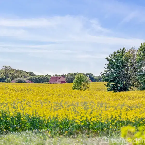 LANDVILLA FULD AF CHARME OG MED SKØN BELIGGENHED Rapsmarkerne maler landskabet gult og skovene resten grønt. Sådan er det her på Vestsjælland, lidt uden for Ruds-Vedby, hvor vi nu byder velkommen i en rigtig charmerende landvilla. Livet på landet er skønt! Den pryder i klassisk stil, den fine villa, hvor vi fortil har sat et til-salg skilt op. En smal vej på én side og marker på den anden, og lige imellem lyser den hvide facade op med sprossevinduer og røde tegl på taget. Idyllen mærkes inde so