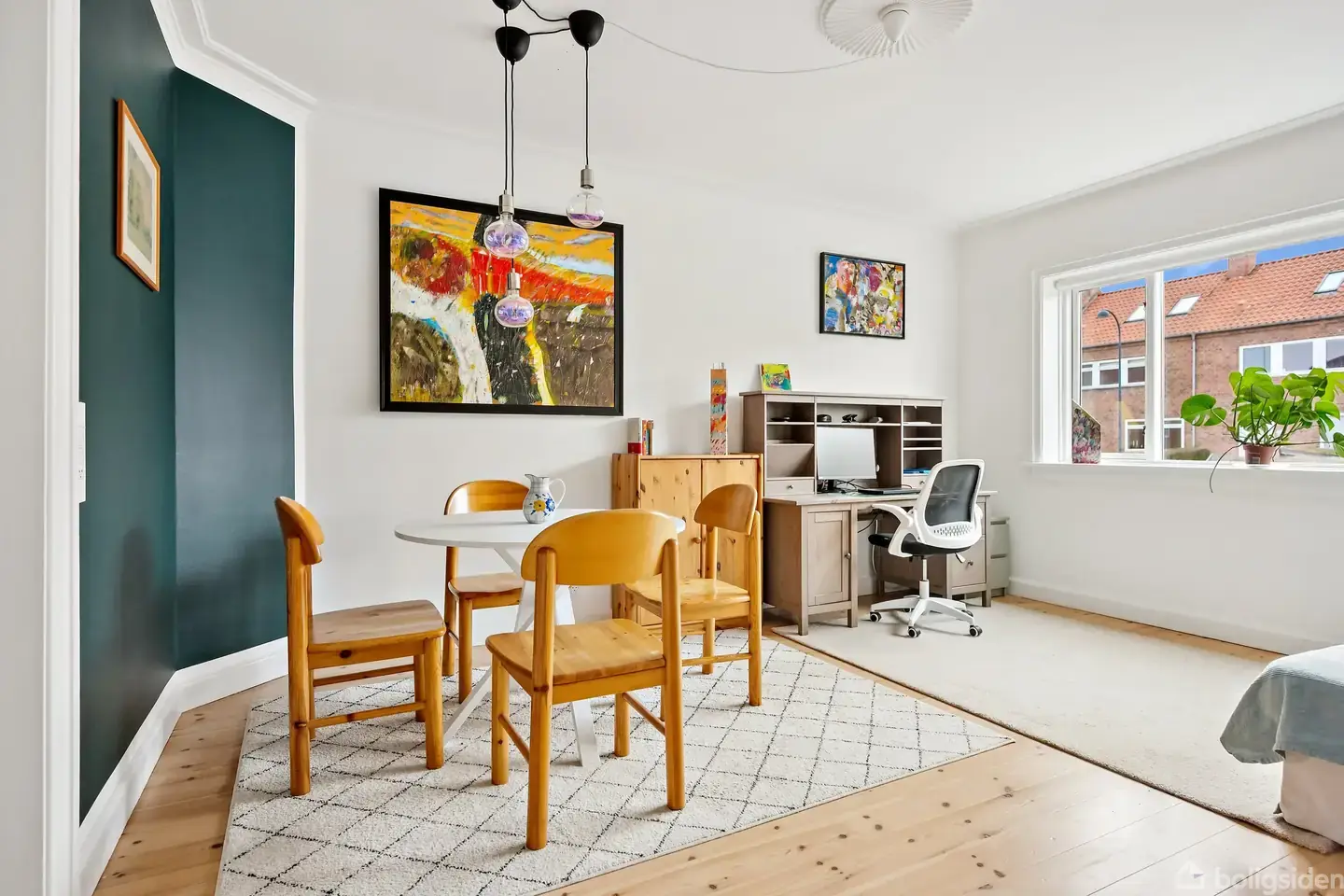 Træd ind i en bolig, hvor hver kvadratmeter er gennemtænkt, og hvor atmosfæren straks føles hjemlig. Moderne detaljer møder klassiske elementer, og rummene fremstår både indbydende og tidløse, klar til at danne rammen om din hverdag og dine drømme.Du bydes velkommen i en rummelig entré med smukke trægulve, der skaber en åben og indbydende stemning.Den store stue imponerer med smuk stuk og et fantastisk lysindfald. Store vinduer lader solens stråler strømme ind og fremhæver den generøse loftshøjd
