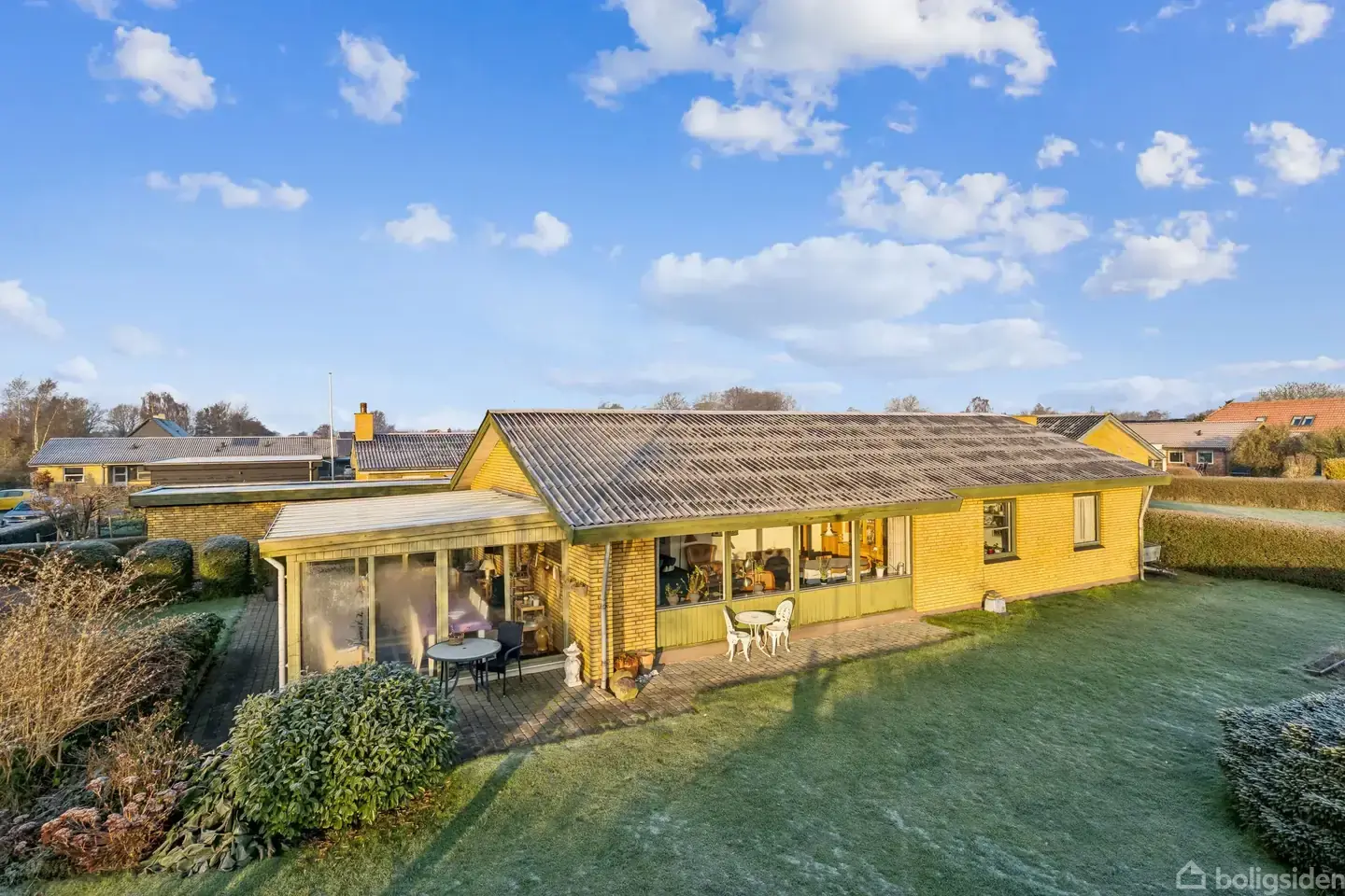 På en rolig og indbydende adresse finder du denne velholdte gulstenvilla fra 1972 på 126 veludnyttede kvadratmeter + stor udstue/sommerstue. Her får du en bolig med masser af lys, plads og atmosfære – perfekt til familien, parret eller dem, der drømmer om en klassisk villa med sjæl. Huset rummer hel 4 gode værelser, som nemt kan indrettes til soveværelse, børneværelser, kontor eller hobbyrum. Planløsningen er funktionel og tidstypisk, og boligen fremstår særligt indbydende med flere velbevarede originale detaljer, der tilfører karakter og charme. Villaen er godt vedligeholdt og fremstår pæn, samtidig med at der er mulighed for, at sætte sit eget præg, hvis man ønsker det. Særligt den hyggelige stue med fantastisk lysindfald og adgang til dejlig udestue bør ses. Udenfor venter en hyggelig og overskuelig have, hvor der er god plads til både afslapning, leg og terrassehygge. Her kan sommerdagene nydes i rolige omgivelser, hvad enten det er med en kop kaffe, grill eller hyggelige stunder med familie og venner. Der er etableret et hyggeligt gårdmiljø mellem hus og garage. Huset har en god garage med støbt gulv, og derudover carport.
