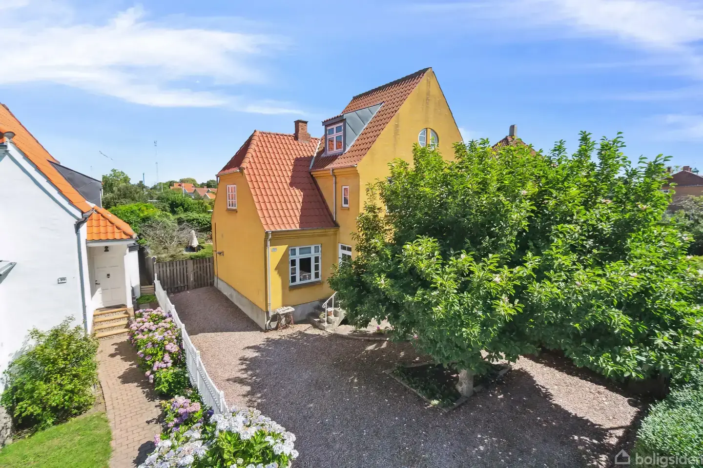 Kom tæt på stranden, de grønne omgivelser og ikke mindst Rønnes hyggelige byliv, når I rykker ind i dette charmerende halve dobbelthus. Stilen er sat udefra med det røde tag, den solgule facade og de hvide sprossevinduer, og indenfor møder I ligeledes fine detaljer og en dejlig indretning. Der er plads til flere biler i indkørslen, hvor magnoliatræet pryder på allerfineste vis. I kan fortsætte via havelågen og om i baghaven. Her springer den store træterrasse straks i øjnene, ligesom gårdmiljøe