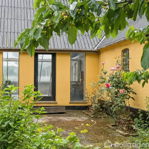 Gården er perfekt placeret, fredeligt ned af en markvej, kun en kort cykeltur fra den populære Råbylille Strand og en kort køretur fra den hyggelige by Stege og Klintholm Havn. Der er også nem adgang til daginstitution og skole i Hjertebjerg samt indkøbsmuligheder i Borre. Indenfor byder gården på en fleksibel rumfordeling, der giver mulighed for opdeling i to selvstændige enheder. Sydlængen har en lille entré, et U-formet køkken med specialfremstillede fronter og en stor spiseafdeling med adgang til en sydvendt terrasse. Herfra kan du nyde udsigten til den frodige have og de omkringliggende marker. Vestlængen tilbyder en rummelig entré, et soveværelse, badeværelse og en stor stue med brændeovn og vinduespartier til gulv. Østlængen har et orangeri med loft til kip, garage og værksted, der giver plads til kreative projekter. Haven er en vild og naturlig skønhed med æble-, kirsebær- og valnøddetræer samt bærbuske, der sikrer en rig høst af frugt og bær. Gården er tilbundsgående renoveret med respekt for dens arkitektur og placering i det smukke østmønske landskab. Den er energirenoveret med et nytænkende varmesystem, der inkluderer solceller, varmepumpe og gulvvarme, hvilket holder energiforbruget lavt. Indvendigt er der højt til loftet, masser af lysindfald og en tidløs stil med kvalitetsmaterialer, der skaber en harmonisk og komfortabel bolig. Denne ejendom er en sjælden mulighed for at opleve det bedste af Møns natur og moderne livsstil.