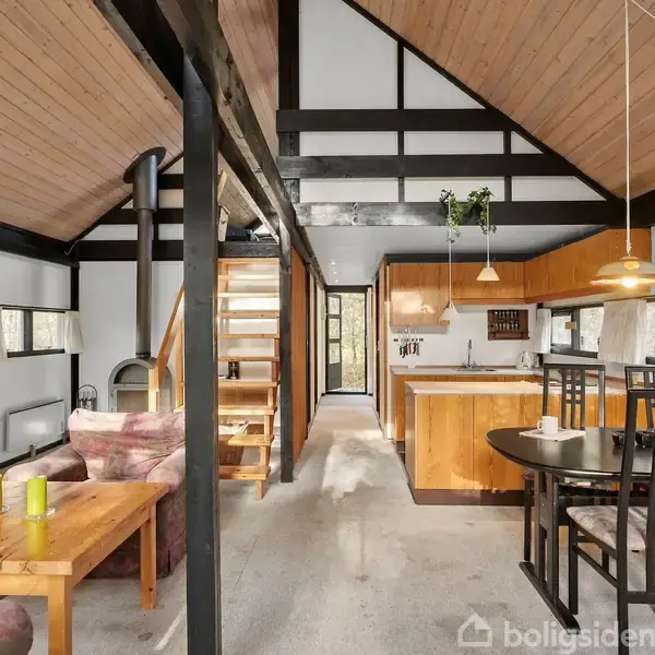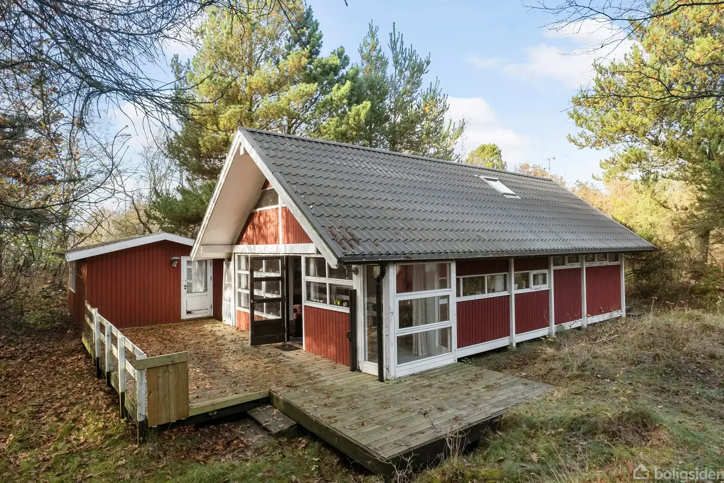 Åbent hus med tilmeldingskrav 2/2 - klik på billede - Fredfyldt fristed omgivet af natur og dyreliv - originalt HØM sommerhus På Søndre Smalbyvej 37 finder du et charmerende og originalt HØM sommerhus, der ligger helt ugeneret – omgivet af høje træer, fuglefløjt og et rigt dyreliv. Her får du et fredfyldt fristed, hvor du kan trække stikket og nyde naturen i sin reneste form. Indenfor mødes du af et køkken-alrum med loft til kip, som danner husets hjerte. Her er der god plads til både madlavning og samvær, og brændeovnen sørger for varme og hyggelig stemning året rundt. Herfra er der adgang til den solrige sydvendte terrasse, der forbinder huset med haven og det skønne anneks, som er godkendt til beboelse og indeholder både tekøkken, toilet – perfekt til gæster, teenageafdeling eller hobbyrum. Boligen rummer tre gode værelser – to i stueplan og ét på første sal – samt badeværelse og en praktisk entré. Den smukke naturgrund indrammes af høje træer og en privat beliggenhed, hvor naturens egne lyde sætter tempoet. Samtidig er du tæt på Hou, der byder på indkøb, badestrand, spisesteder og aktiviteter året rundt, mens Hals nås på få minutter i bil eller på cykel. Et sommerhus med sjæl, ro og masser af natur – et sted, hvor du kan nyde livet, som det er, eller skabe dit helt eget personlige fristed.