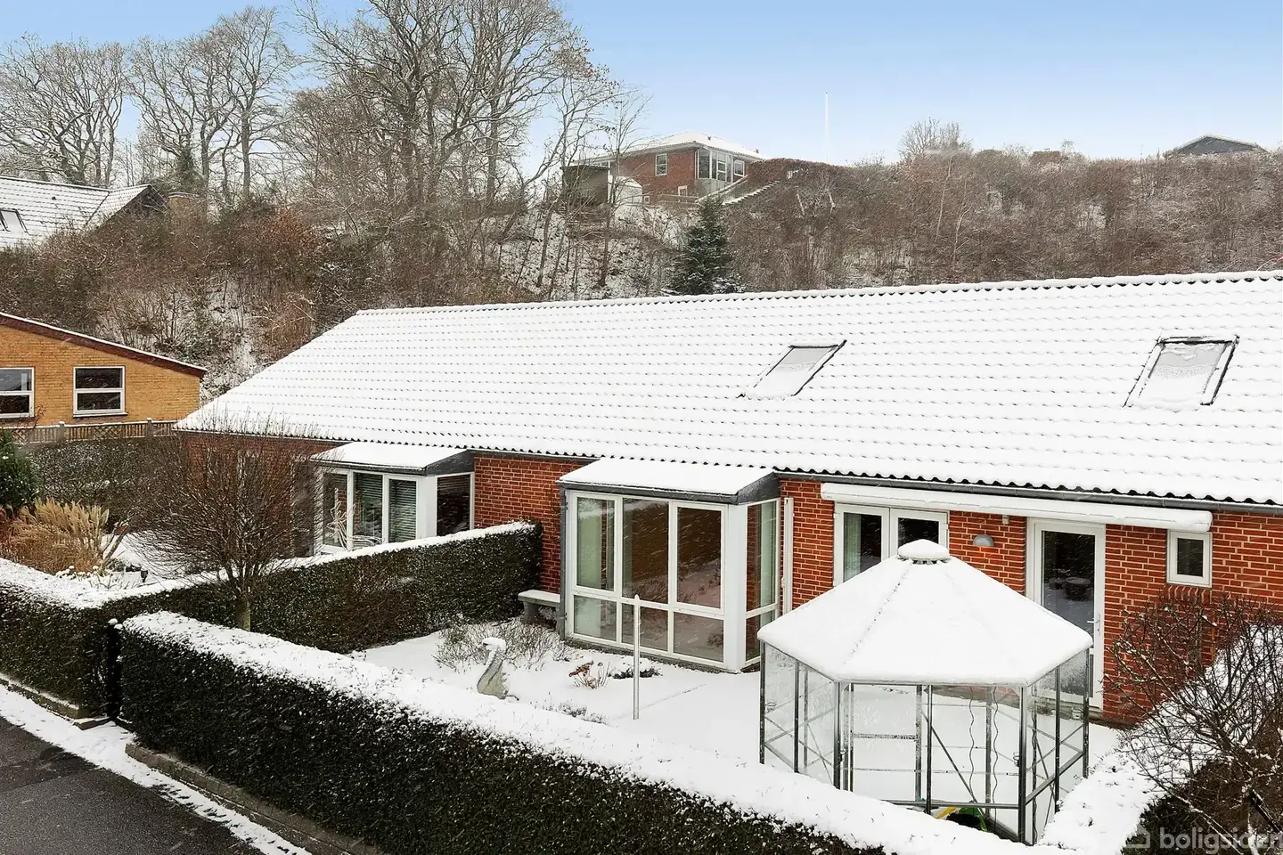 På Søvej 18D i skønne Langå finder du denne velindrettede bolig beliggende i et roligt og attraktivt område. Boligen fremstår lys, velholdt og indflytningsklar med en behagelig og indbydende atmosfære. Boligen rummer 103 m² og er indrettet i ét plan med en funktionel og gennemtænkt planløsning. Her er tre værelser, hvoraf det ene er indrettet med en hems, som giver ekstra anvendelsesmuligheder og bidrager til en hyggelig rumfornemmelse. Det store soveværelse har ovenlysvinduer og god plads. Herudover er der et ekstra kontor/mindre værelse med gode opbevaringsmuligheder. Boligens naturlige samlingspunkt er det store og åbne køkken-alrum med god plads til både madlavning og samvær. Her opleves et flot lysindfald fra ovenlysvinduerne, som giver rummet en åben og let atmosfære dagen igennem. Fra køkken-alrummet er der direkte udgang til en hyggelig have, som indbyder til afslapning og udeliv i rolige omgivelser. Boligen rummer endvidere et pænt og velholdt badeværelse, som fremstår funktionelt og indbydende. Bemærk: Der er flotte nyere laminatgulve og fremstår indflytningsklart. Langå er en by med gode rammer for hverdagen og et velfungerende lokalmiljø. Her findes skole, kirke, bager, dagligvarebutikker og lokale erhverv, og byen er omgivet af smuk natur med skovområder og å-landskaber, der indbyder til friluftsliv. Derudover er der nem adgang til togforbindelser, som giver hurtig og bekvem transport til både Randers og Aarhus. Søger du en lys og velindrettet bolig i rolige omgivelser med natur, hverdagens faciliteter og gode transportmuligheder tæt på, så er Søvej 18D helt sikkert noget for dig!